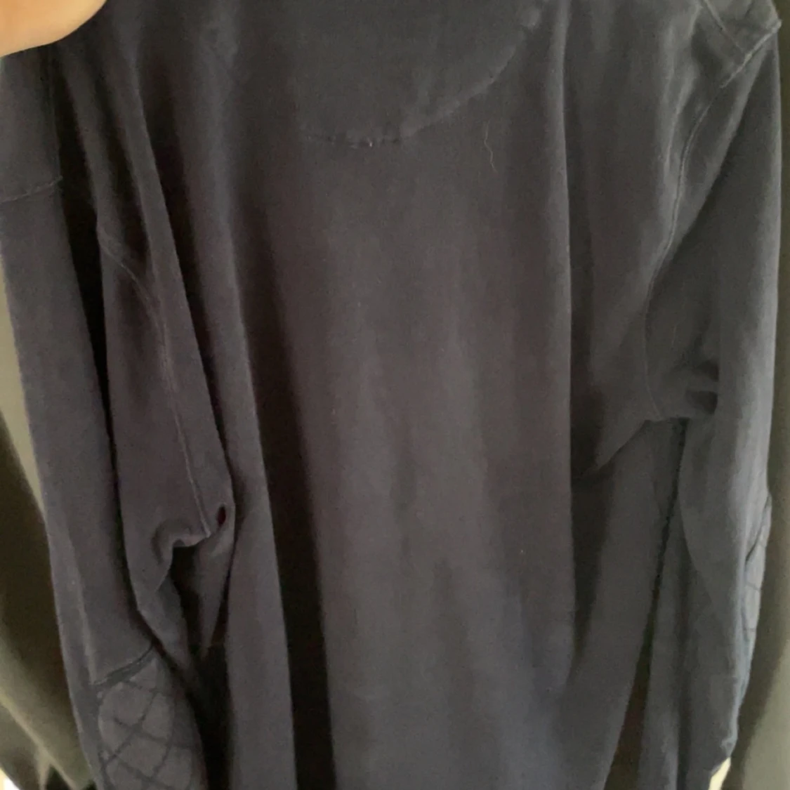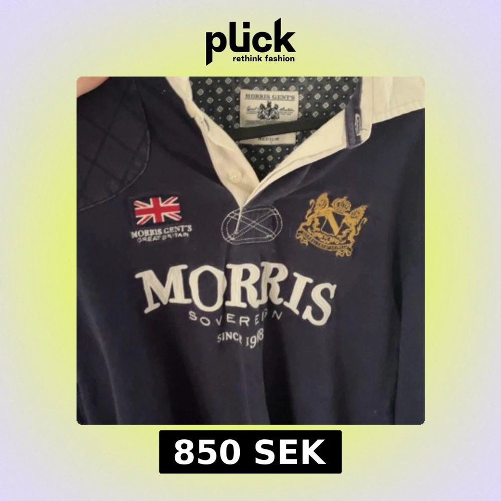 Mörkblå långärmad rugbyinspirerad skjorta från Morris Gents med vit krage, broderad brittisk flagga och guldfärgat emblem på bröstet. Snygga quiltade detaljer på armbågarna och klassisk knappslå framtill. Perfekt för dig som gillar preppy stil.