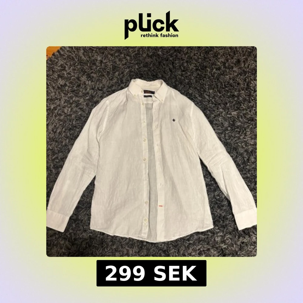 Vit skjorta från Morris i mjukt linne med klassisk krage och knappar framtill. Långärmad modell med diskret blå broderad logga på bröstet. Perfekt för dig som gillar stilrena och fräscha plagg med snygga detaljer.