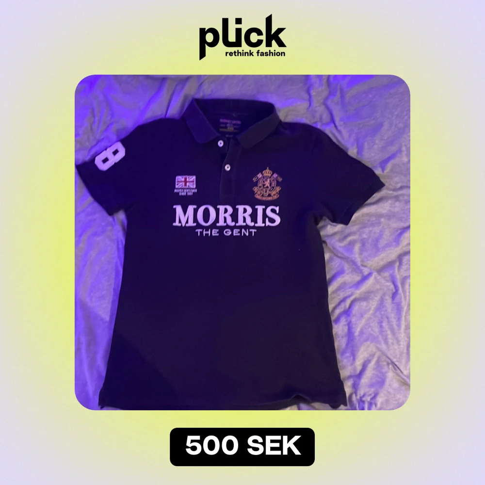 Säljer en snygg svart pikétröja från Morris i storlek medium. Tröjan är gjord av 100% bomull och har korta ärmar. Passar 170cm passar men är för smala