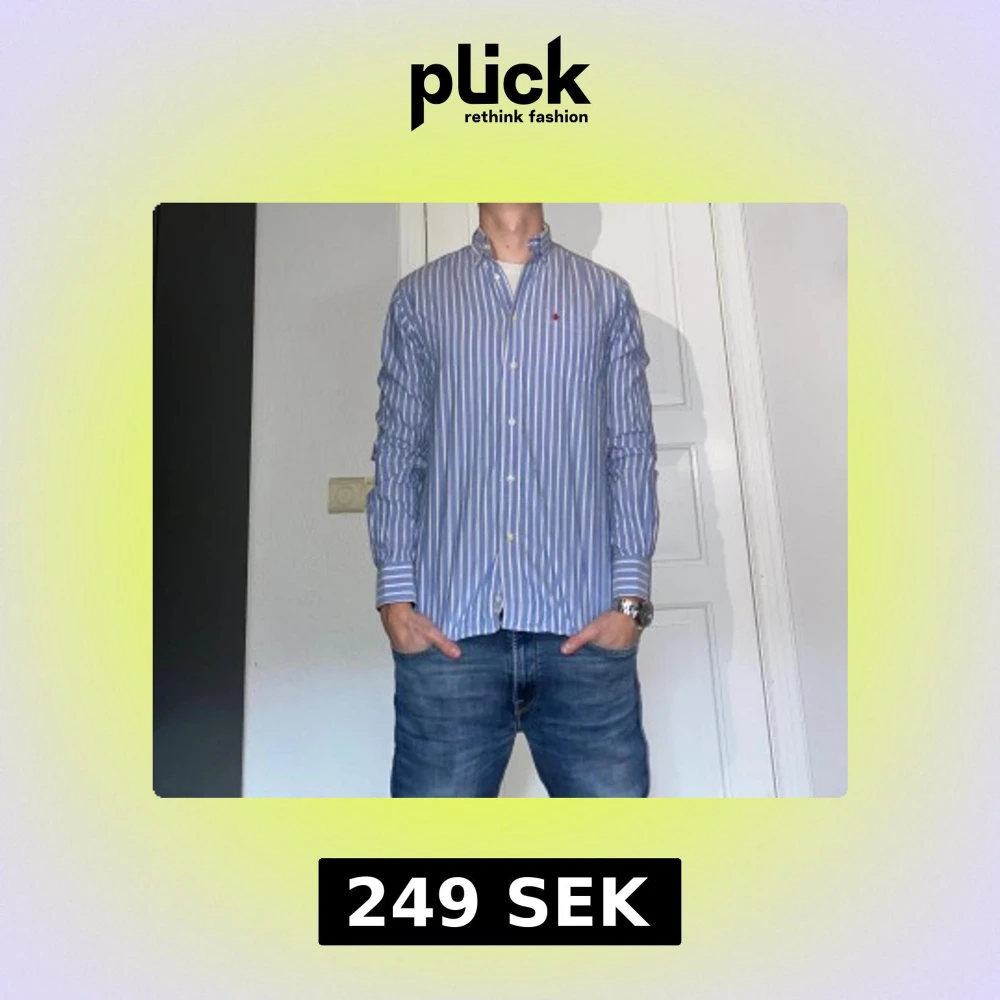 Blårandig skjorta från Morris i storlek S. Fint skick till ett bra pris. Nypris: 1995kr. Mitt pris: 249kr. Vid frågor eller funderingar, tveka inte att höra av dig.
