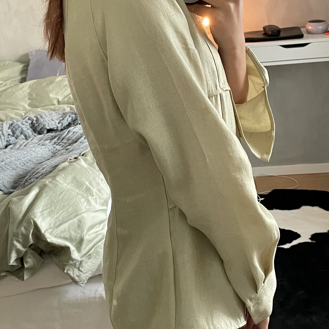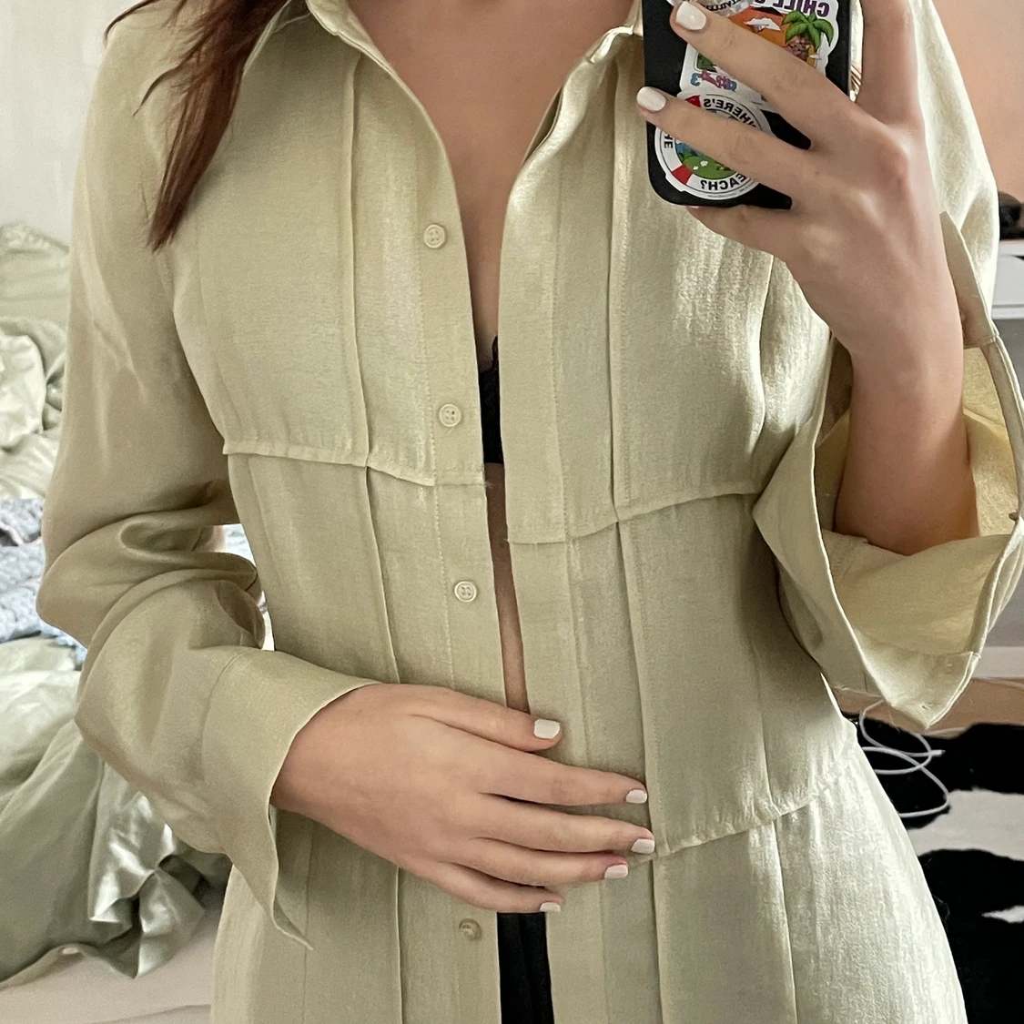 Säljer min favorit skjorta från na-kd som tyvärr inte kommer till användning längre. Den är grön och skimrar. Kan skicka fler bilder på begäran. Frakt tillkommer 💚