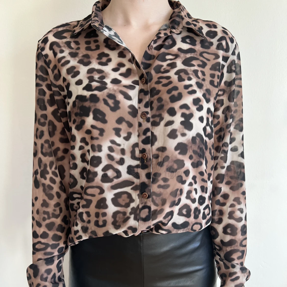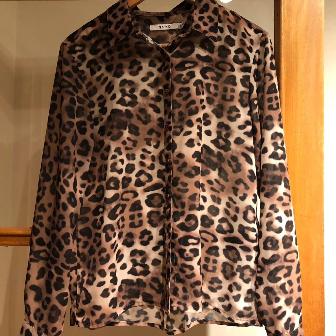 Leopardmönstrad skjorta från NA-KD, storlek 34. Använd 2 ggr, fint skick. Lite trådar vid en söm i ena ärmslutet.