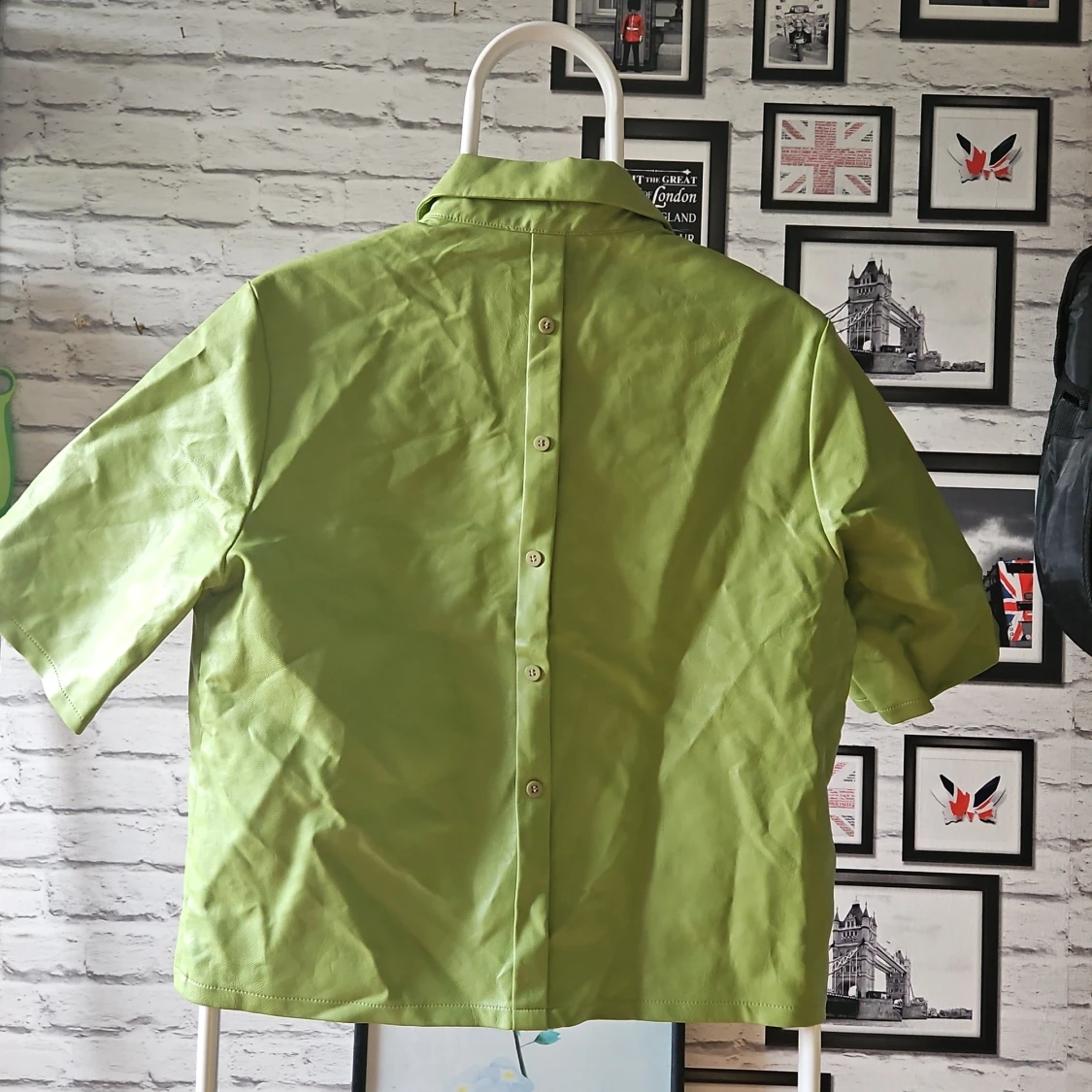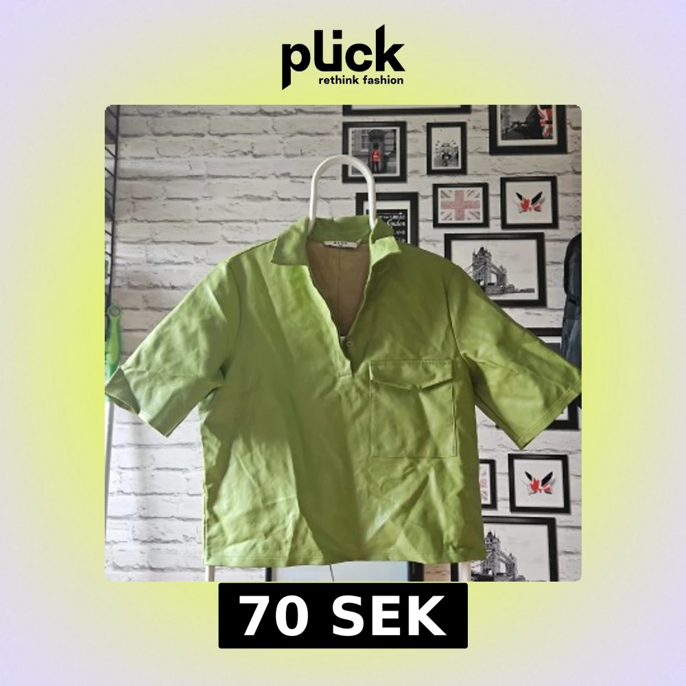 Snygg ljusgrön skjorta från NA-KD med korta ärmar, klassisk krage och stor bröstficka. Skjortan har knappar längs ryggen. Perfekt för dig som vill sticka ut med en cool färg. Extra knapp medföljer