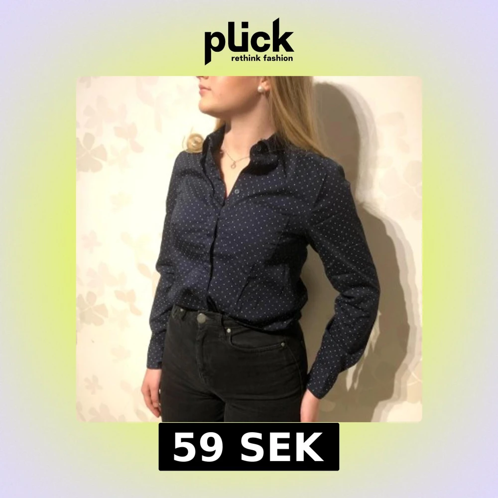Snygg mörkblå skjorta med små vita prickar. Skjortan har långa ärmar och en klassisk krage. Perfekt för en stilren look.