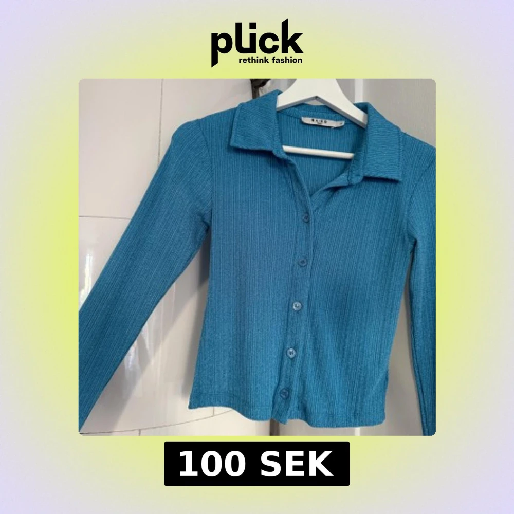 Snygg blå skjorta från NA-KD med ribbad struktur och klassisk krage. Skjortan har långa ärmar och knäppning framtill med matchande blå knappar.