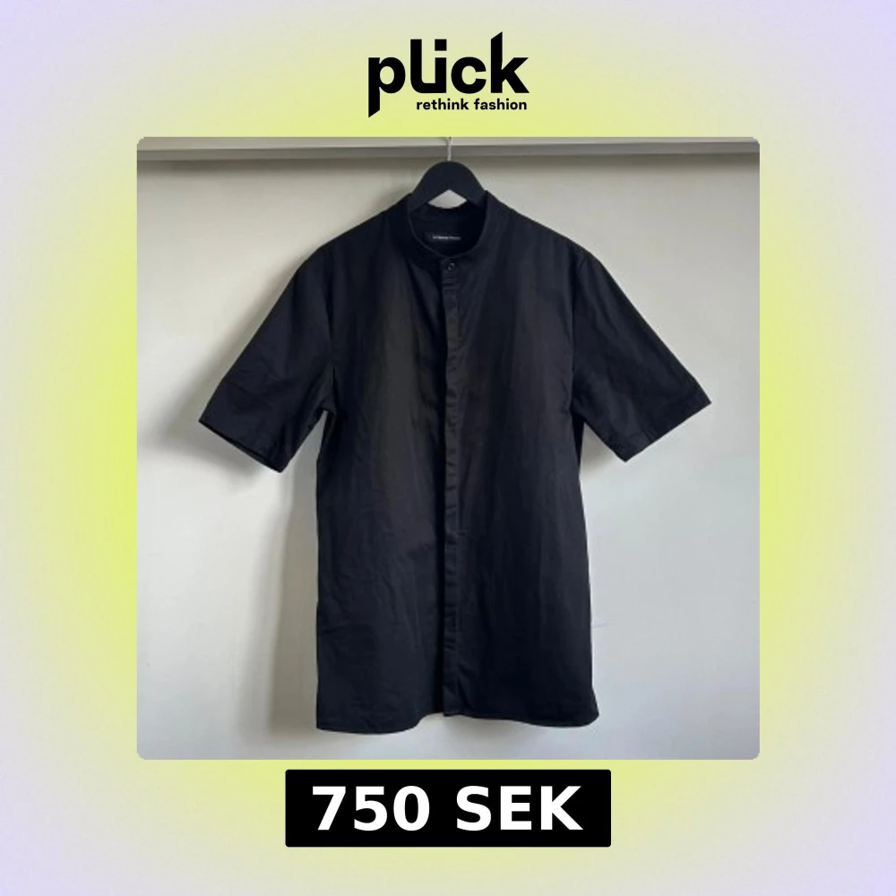Nomen Nescio svart kortärmad skjorta med mandarin krage och dold knäppning. Storlek M (passar true-to-size). 78% bomull, 22% lin