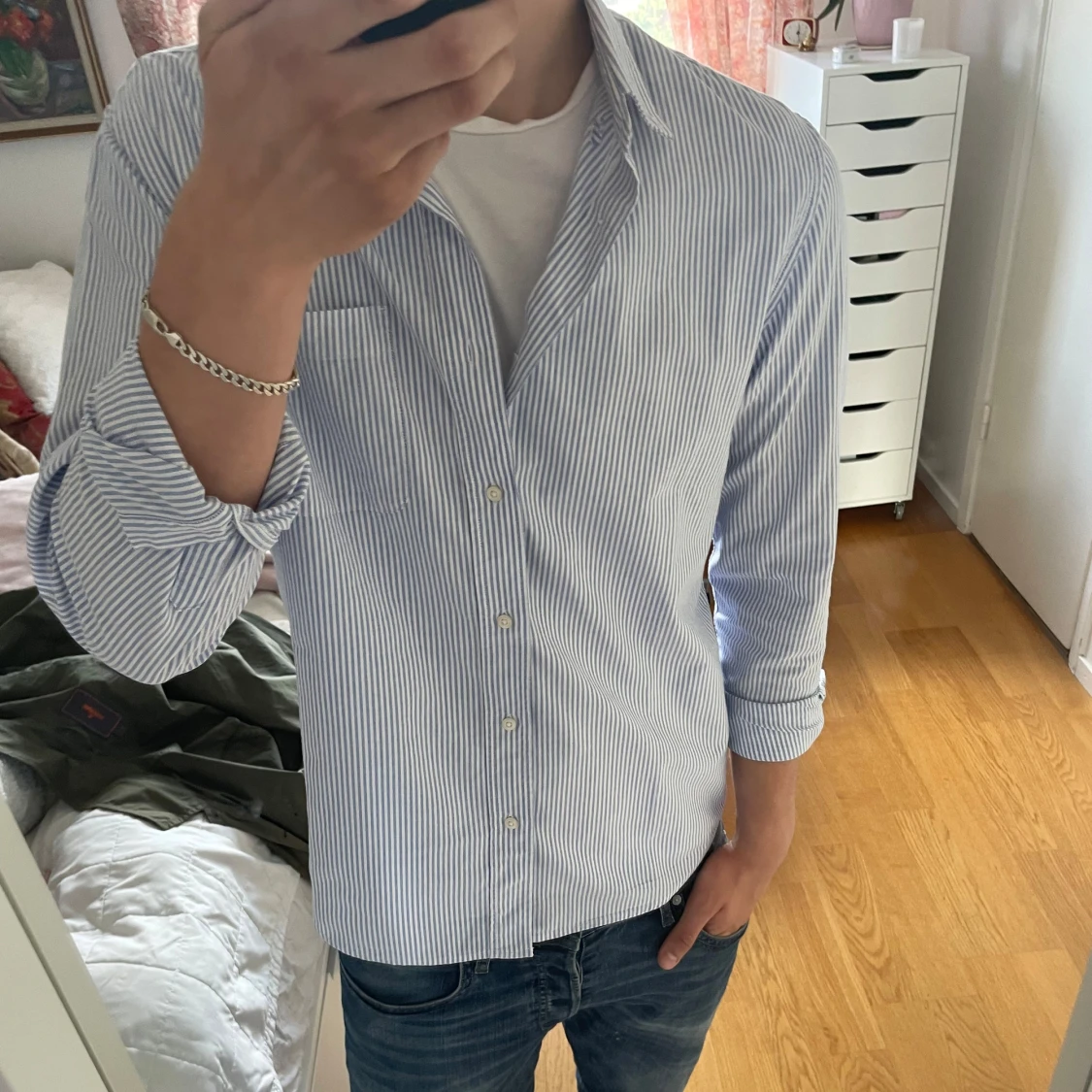 En klassisk blåvit randig skjorta, perfekt för sommaren!