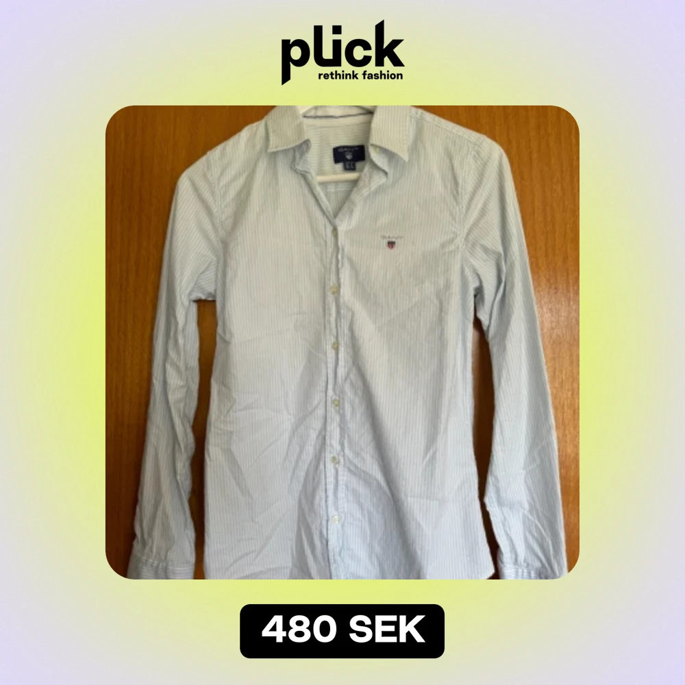 Blå/vit-randig skjorta från GANT. Sparsamt använd. Strl.34.