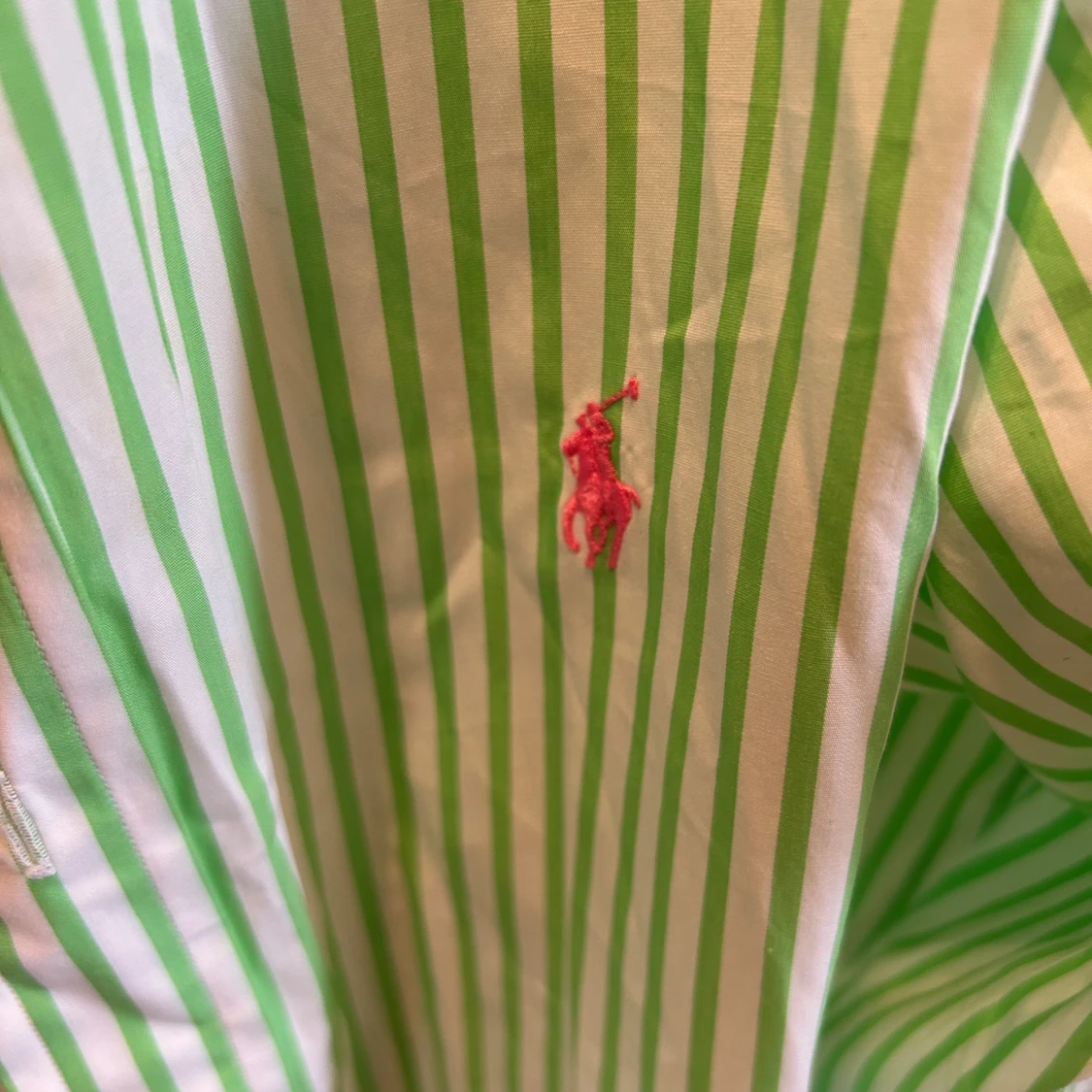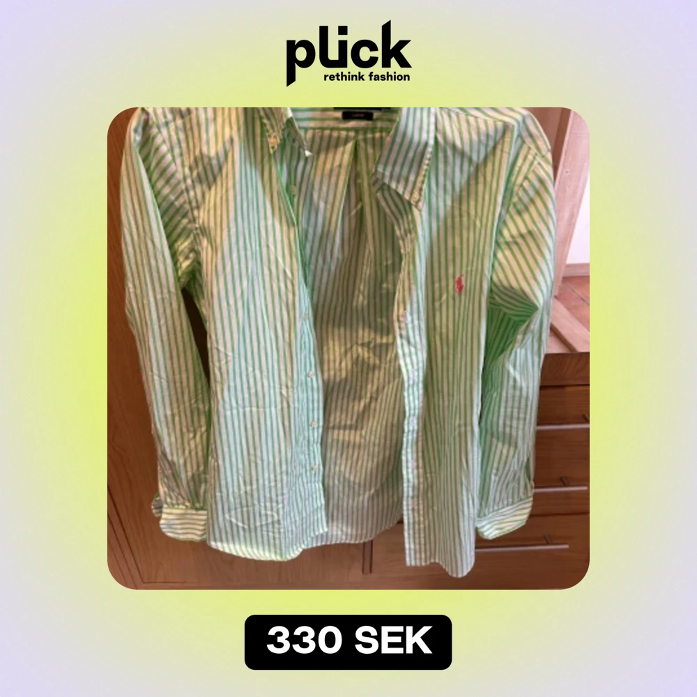 Polo Ralph lauren skjorta i storlek S. I ett randigt vit och ljust grönt mönster. Mycket bra skick. Perfekt sommarskjorta. Nypris 1199kr