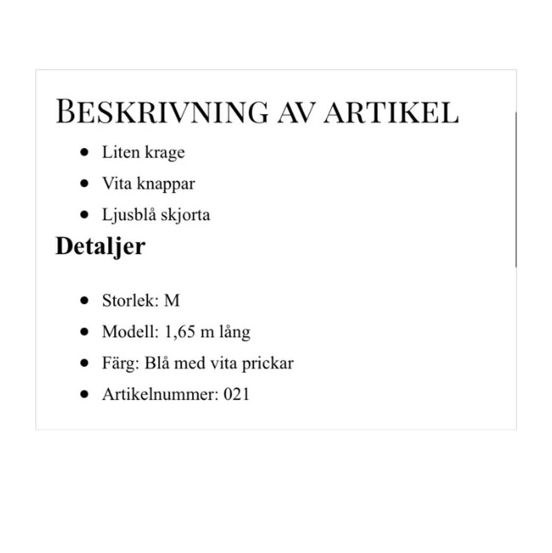 Blå skjorta med vita små prickar i storlek M Besök gärna vår hemsida! https://www.yourvismawebsite.com/secondhope-uf/startsida Instagram: secondhope.uf