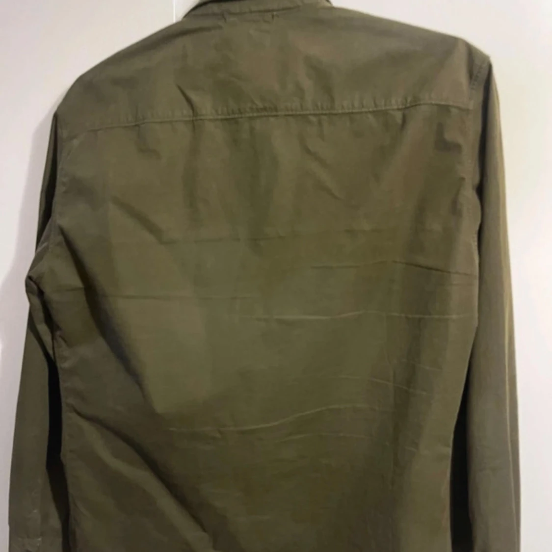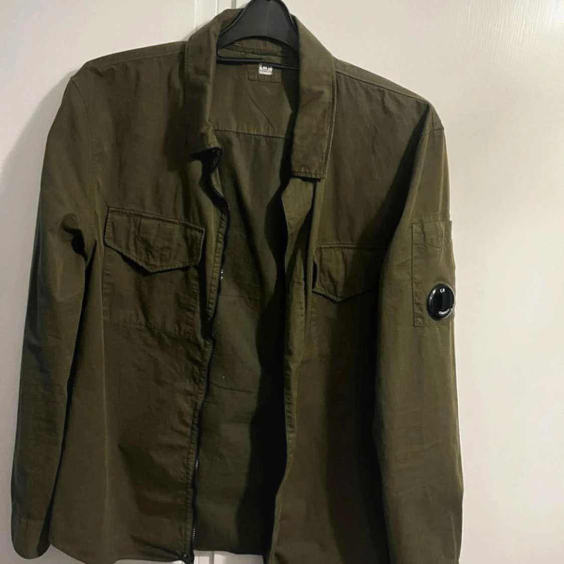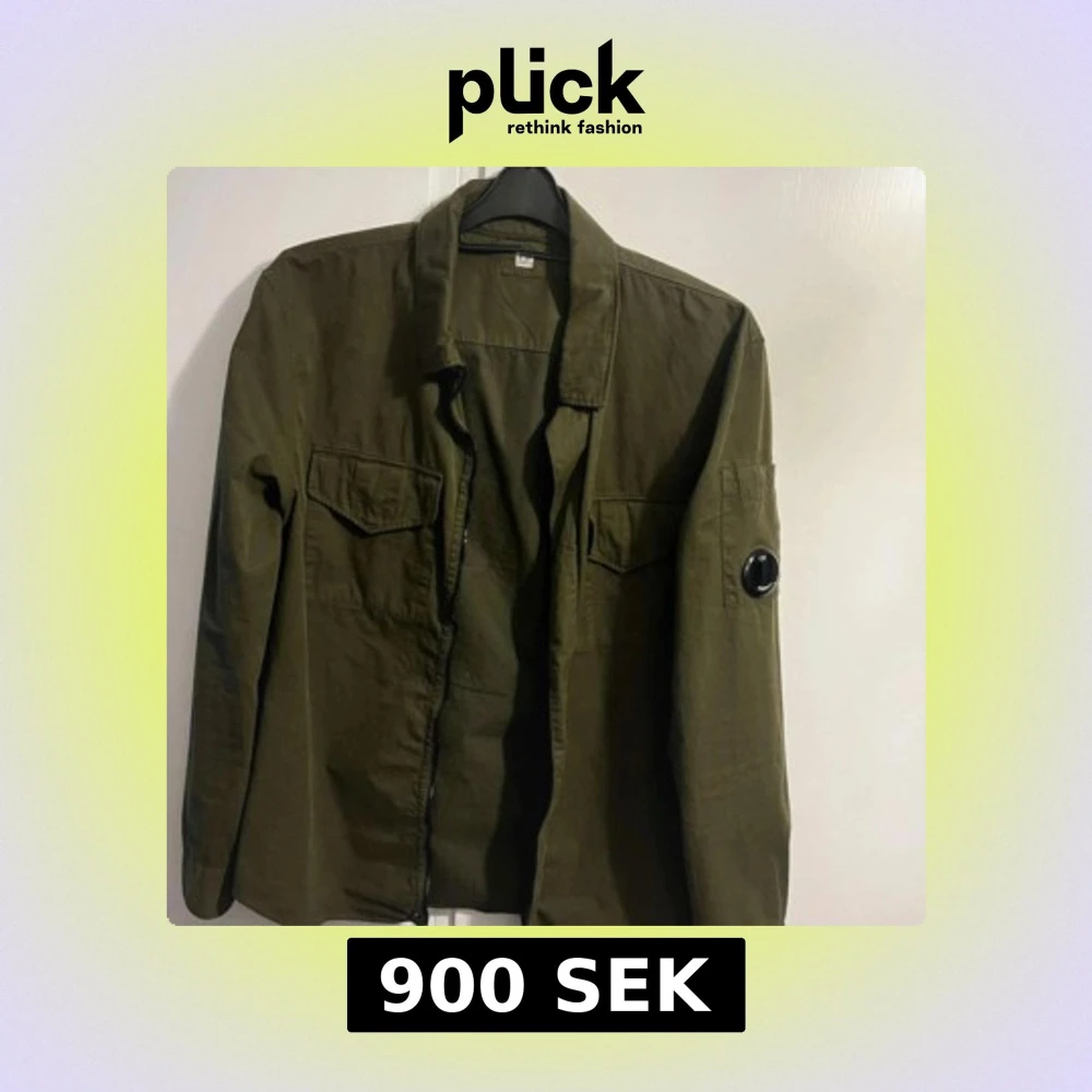 Säljer en olivgrön overshirt från C.P. Company med klassisk krage, två bröstfickor med lock och knapp samt den ikoniska linsen på ärmen. Perfekt lager-på-lager-plagg med lång ärm och stilren design.