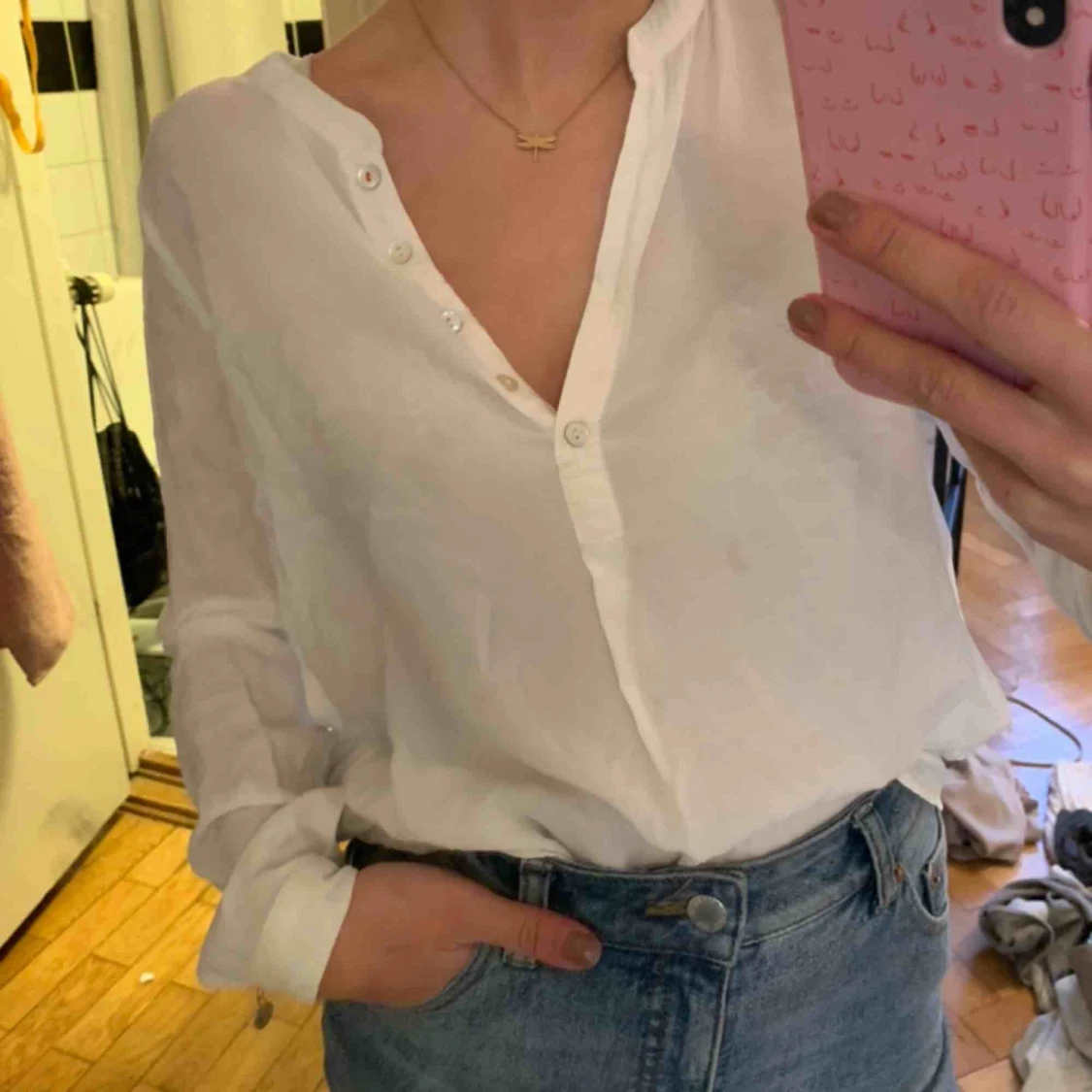 Skjorta utan krage i mjukt bomullsmaterial. Knäppning halvvägs ner i pärlemor. Priset är exklusive frakt.