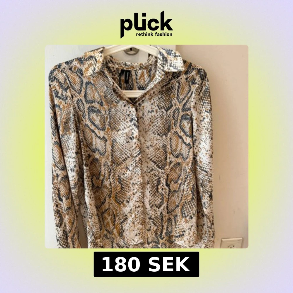 Snygg skjorta från Zara med ormmönster i beige, brunt och svart. Skjortan har klassisk krage, knappar framtill och långa ärmar. Perfekt för dig som vill sticka ut med ett djurmönster och gillar trendiga detaljer.