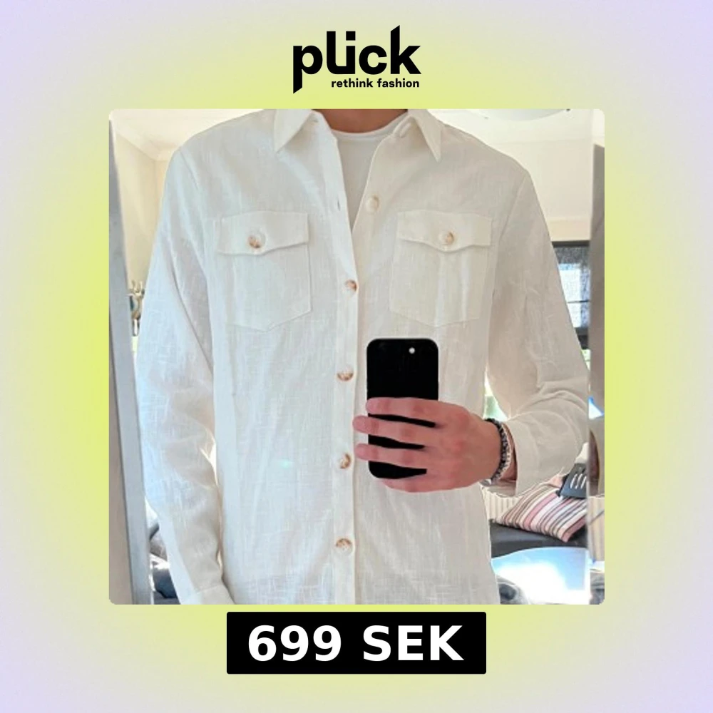 Säljer en stilren vit skjorta från Ciszere i linne. Skjortan har lång ärm, klassisk krage och två bröstfickor med knappar. Perfekt för en fräsch och avslappnad look.