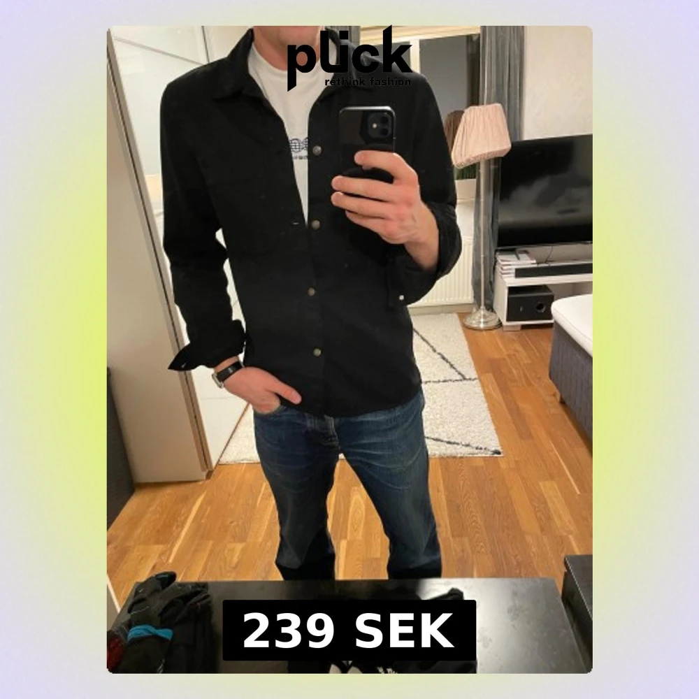 Svart overshirt från Zara i storlek L. Snygg och stilren med klassisk krage, två bröstfickor och tryckknappar framtill. Relativt robust och skön att ha på sig, funkar perfekt att kombinera med tisha eller skjorta. Priset är ej hugget i sten!