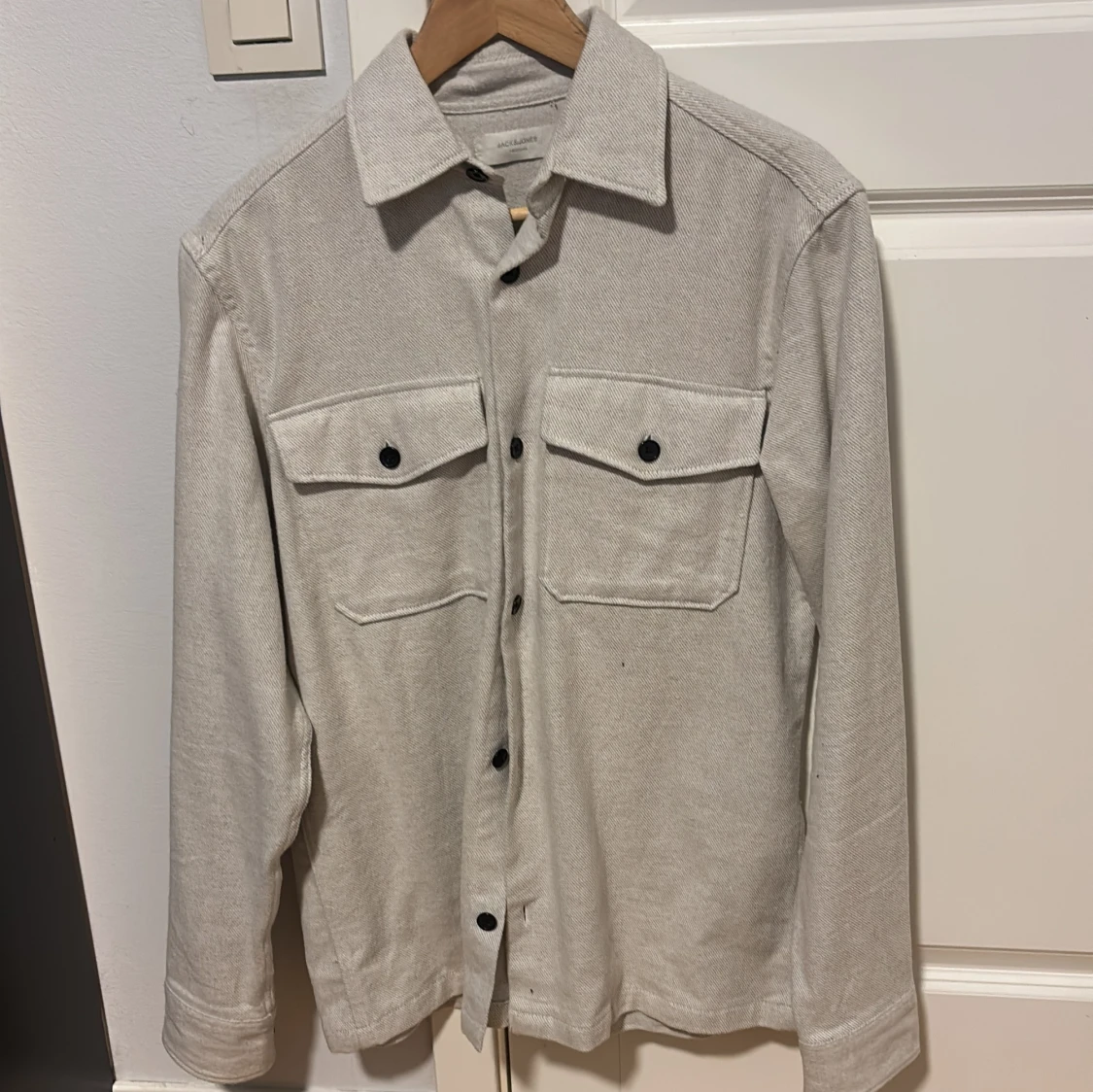 Stilren beige overshirt från Jack & Jones Premium med svarta knappar och två stora bröstfickor. Skjortan har klassisk krage och är tillverkad i ett mjukt bomullstyg. Perfekt lager-på-lager-plagg med relaxed vibe.