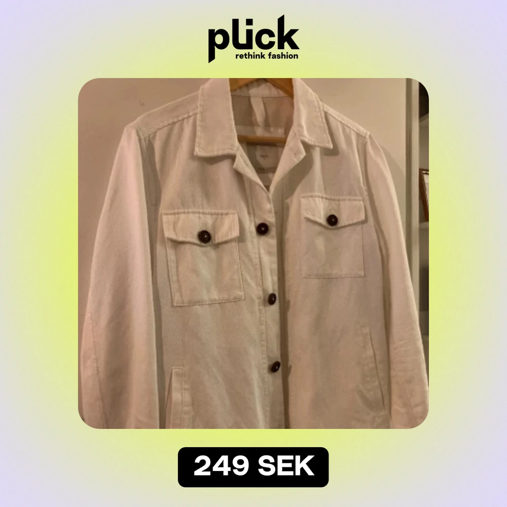Vit overshirt från Mango, sparsamt använd. Storlek Small. Har en väldigt liten svart fläck (se sista bilden) som knappt syns.