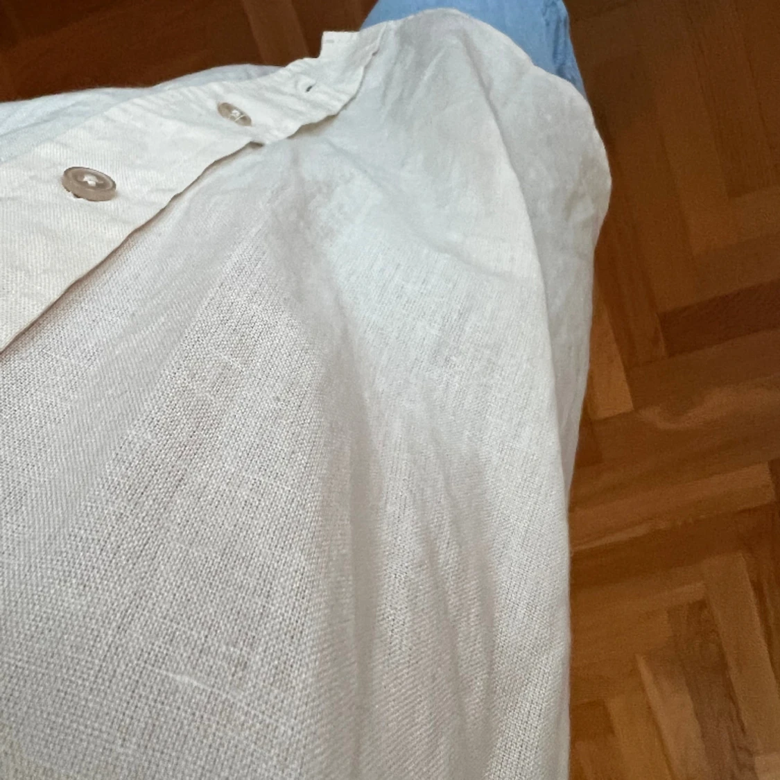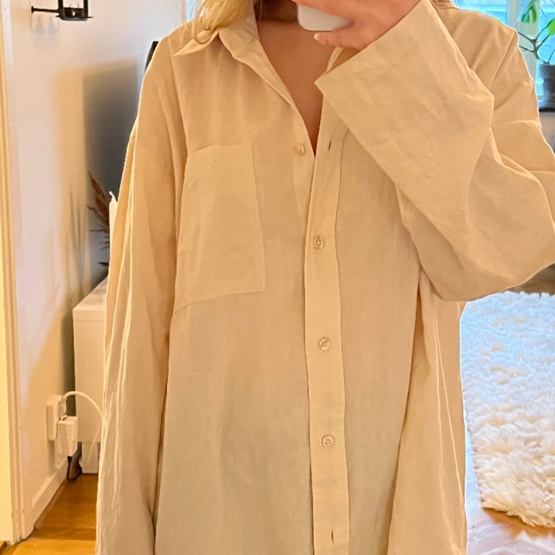 Oversized beige linneskjorta från Asos. 6% linne, 94% bomull. Bra skick! Storlek EU 34(oversized). 100:- ex frakt.