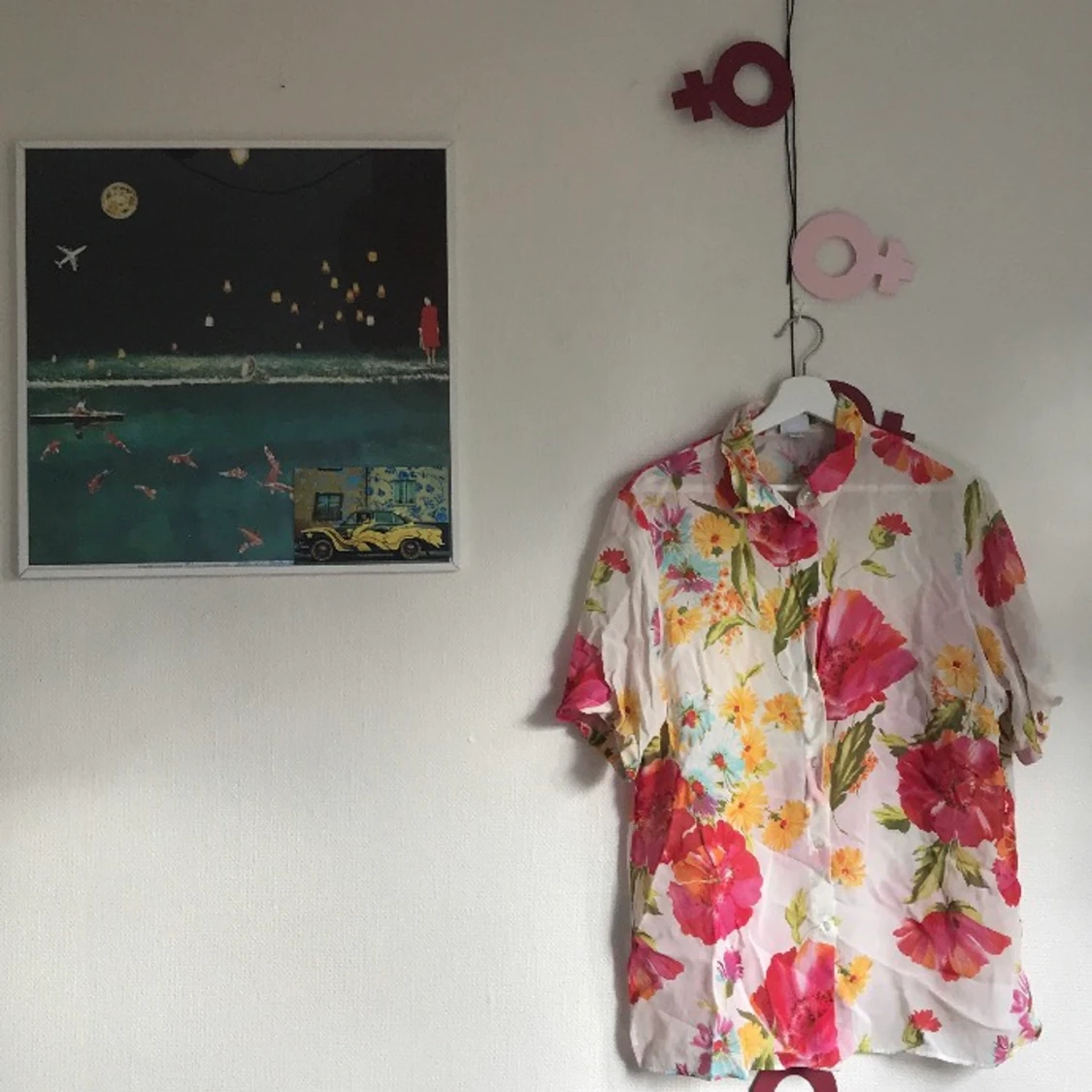 Superfin sommarskjorta med blommor! Tyget är tunt och skönt, alltså perfekt för den där sommarfesten eller poolpartyt;) Den är i M/L men är du en S blir den snyggt oversized!