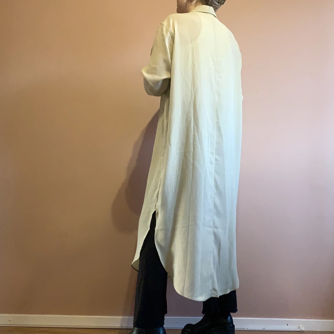 Mintgrön skjortklänning från H&M i boxig modell. Strl 36, längd 126 cm mätt från axel. Använd fåtal gånger