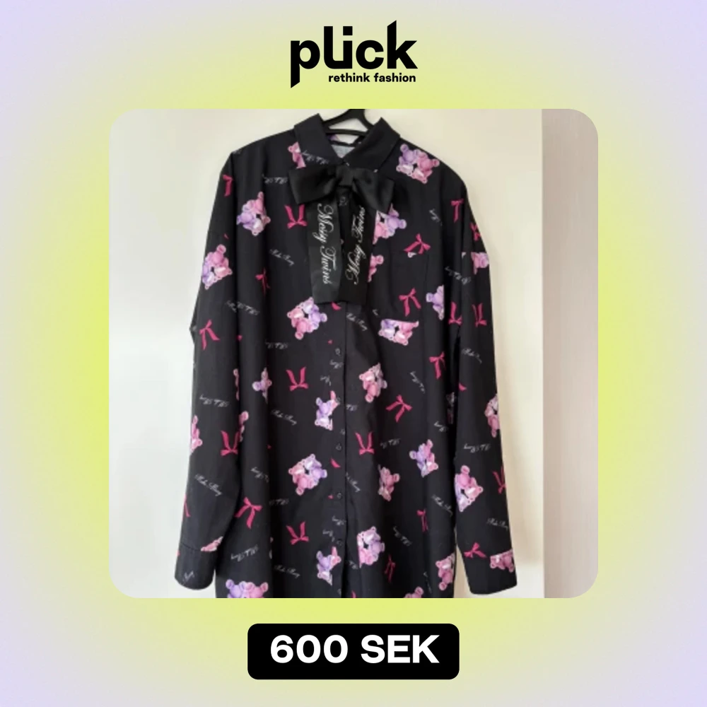 Over Sized Shirt Dress! The shirt is on very good condition, featuring a printed detachable ribbon and pockets. The print bear print is both cute but suits an edgier jirai look! Would also fit a bit larger sizes as it is very over sized!