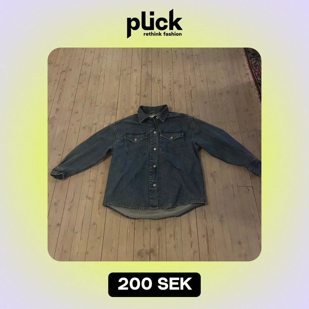 Oversized jeansskjorta med tryckknappar i mellan blå tvätt