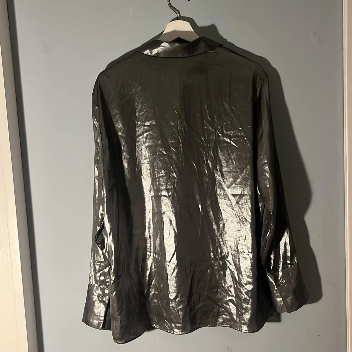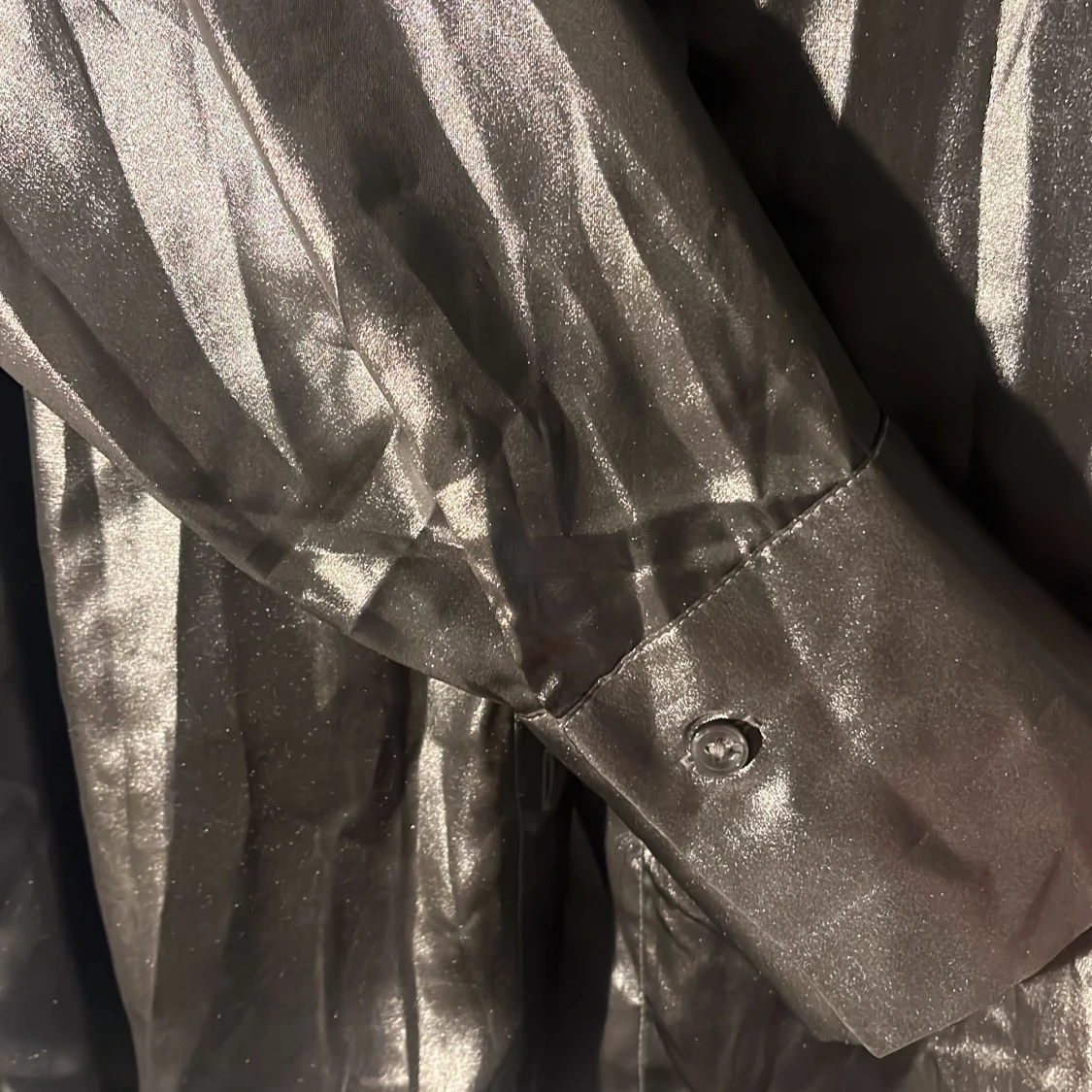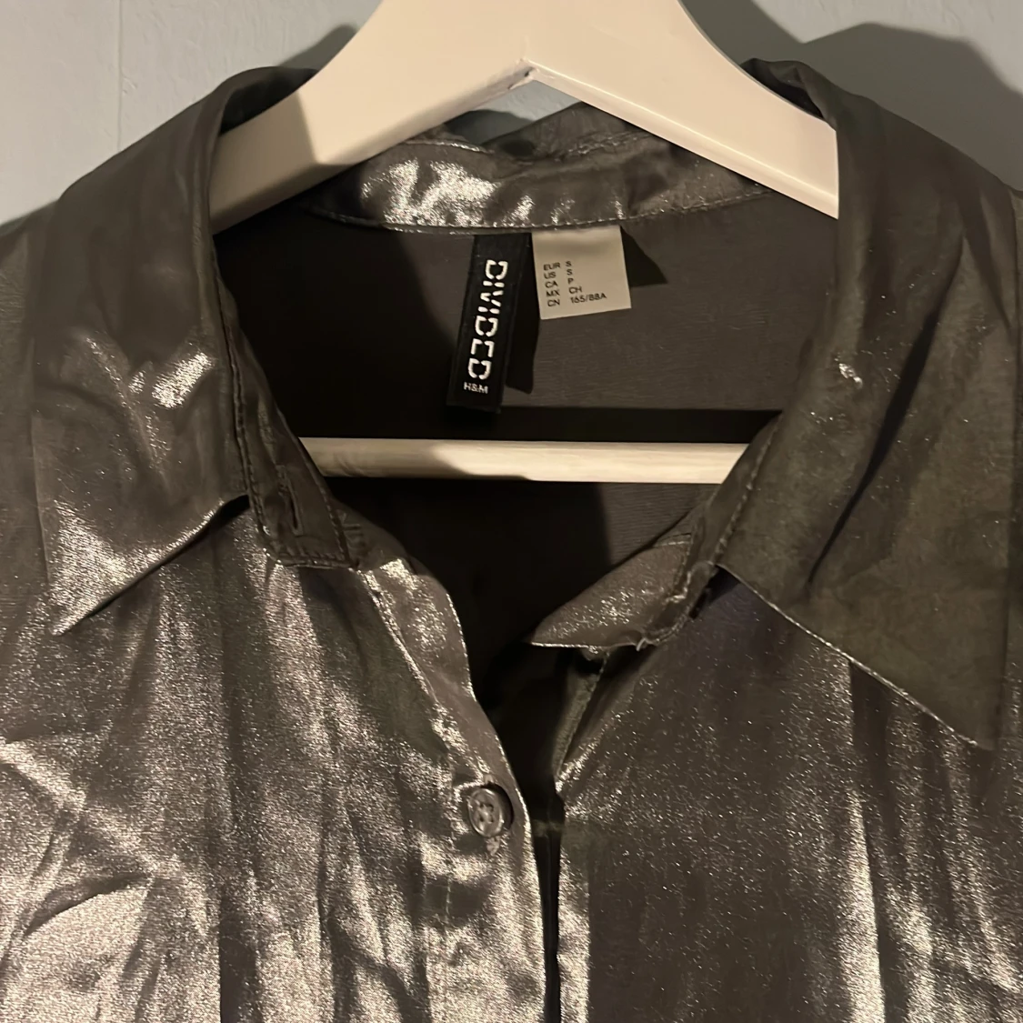 Lightweight silver skjorta. Storlek S. Bara använd en gång så inga defekter eller missfärgningar. (Den ser glittrig ut på bilderna men den är bara glansig).