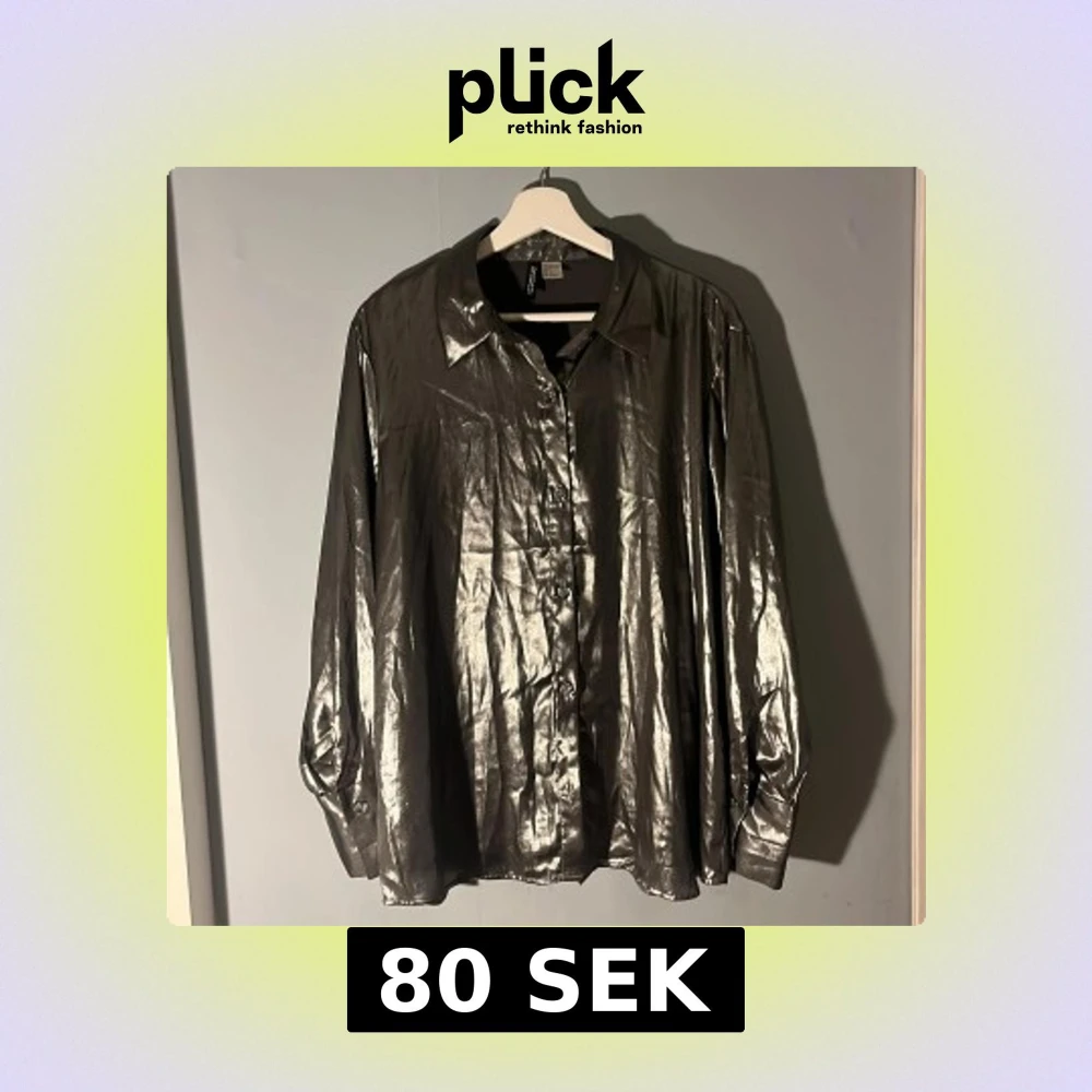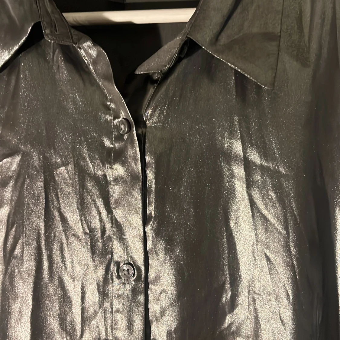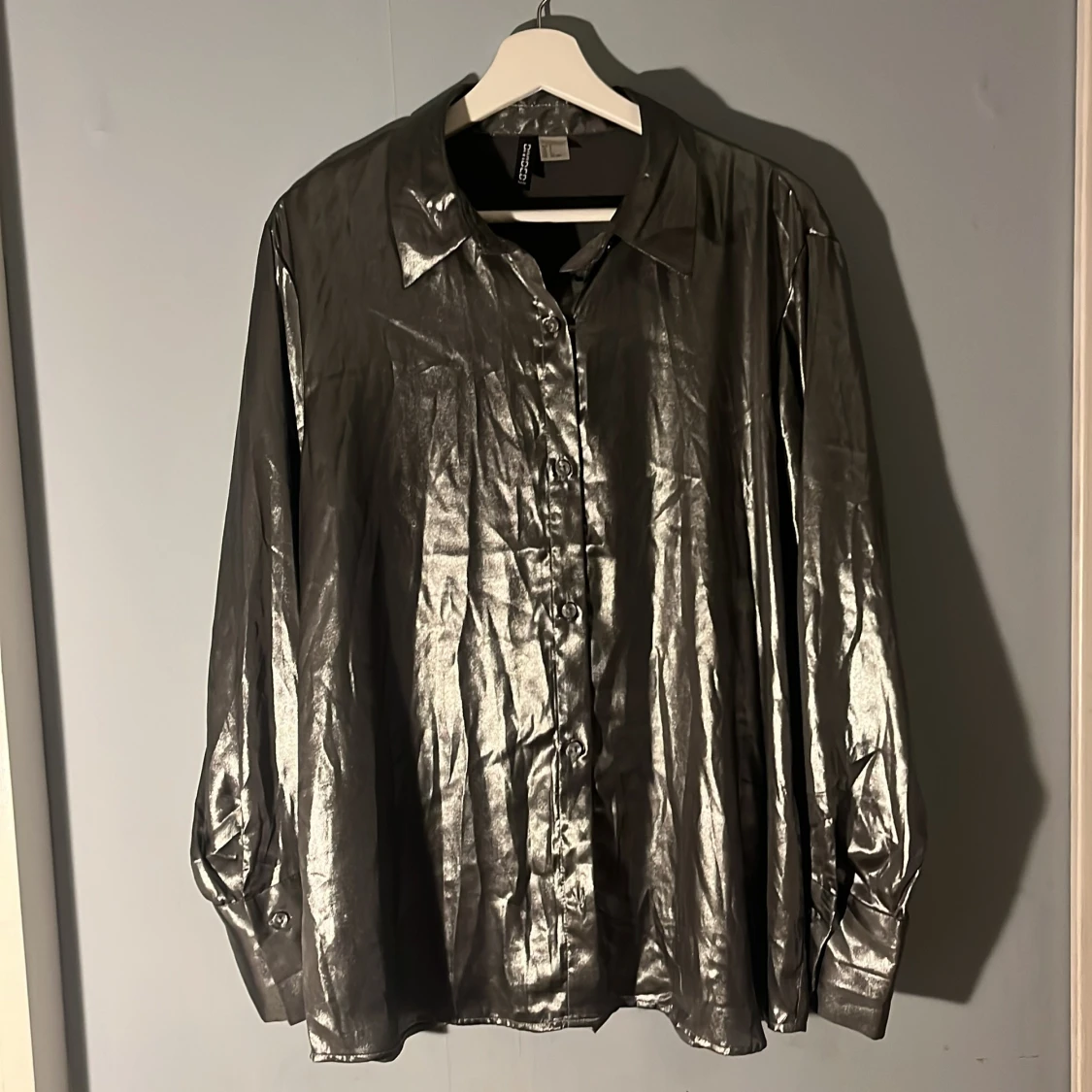 Lightweight silver skjorta. Storlek S. Bara använd en gång så inga defekter eller missfärgningar. (Den ser glittrig ut på bilderna men den är bara glansig).