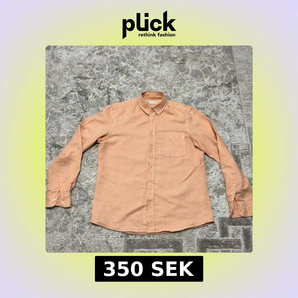 Persikofärgad skjorta från Zara i storlek S, tillverkad i mjukt linne. Klassisk modell med knappar framtill, bröstficka och button-down krage. Långärmad och med en clean look som är lätt att matcha med jeans eller chinos.