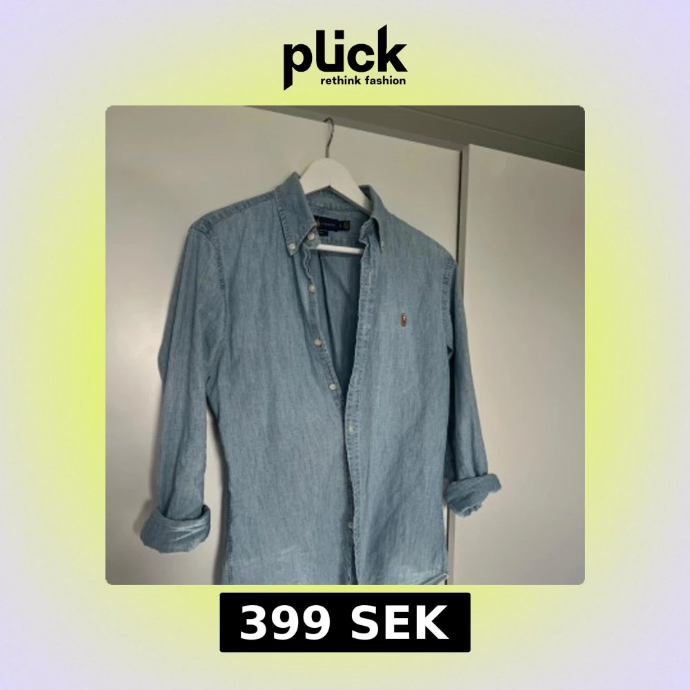 Säljer en klassisk ljusblå jeansskjorta från Ralph Lauren i slim fit-modell. ny pris runt 2500kr och skicket är 9/10