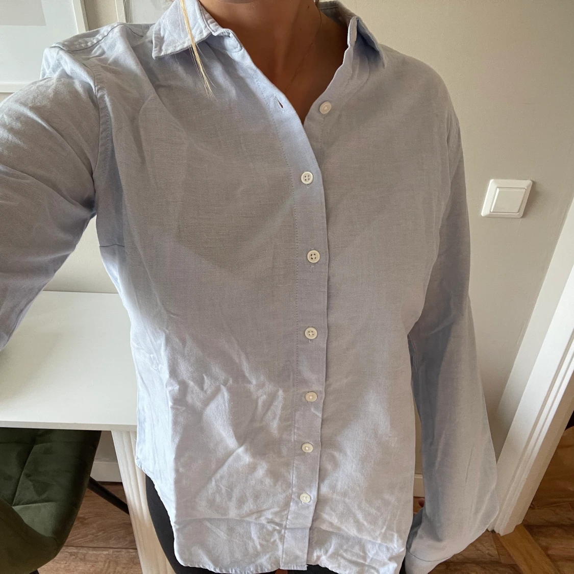 Väldigt fin blå skjorta! Den är endast använd ett fåtal gånger så den är i nyskick ☺️ det står ingen storlek men skulle säga xs/s