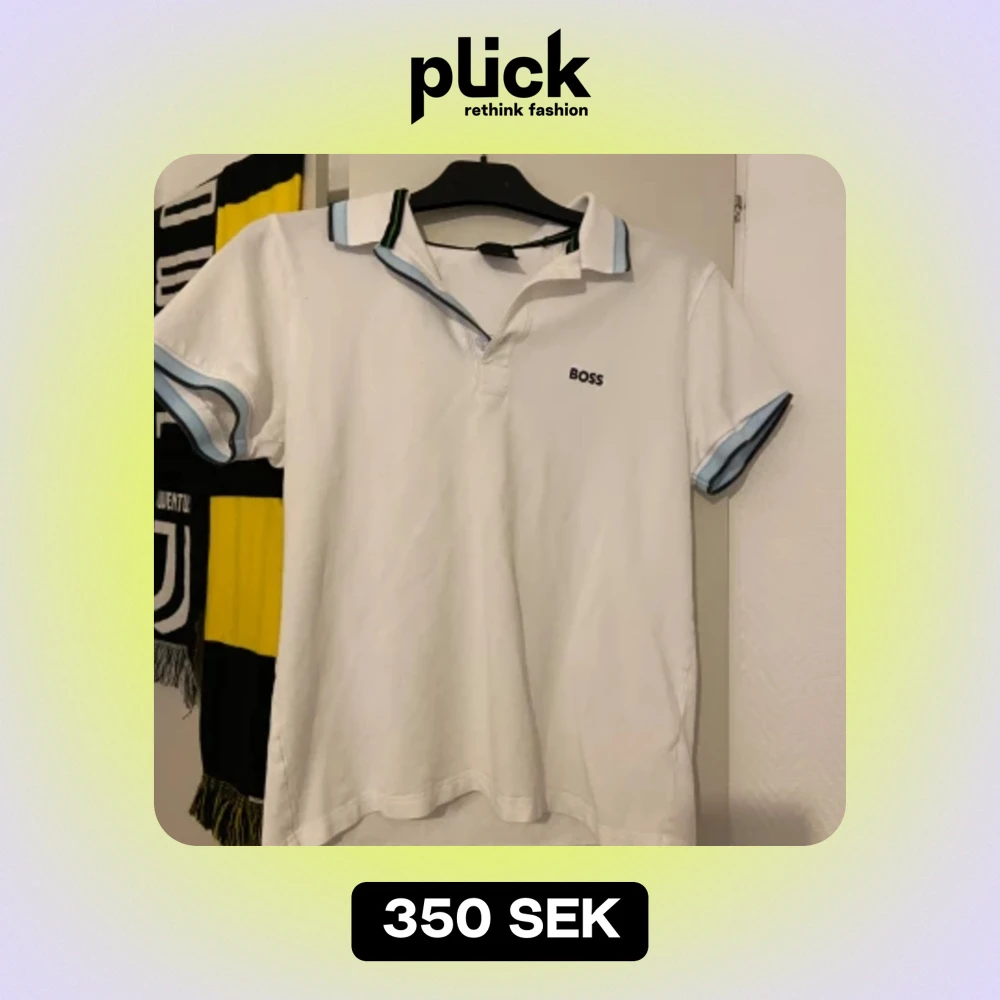 Vit boss piké med blå och svarta detaljer. Asbra kvalitet👏