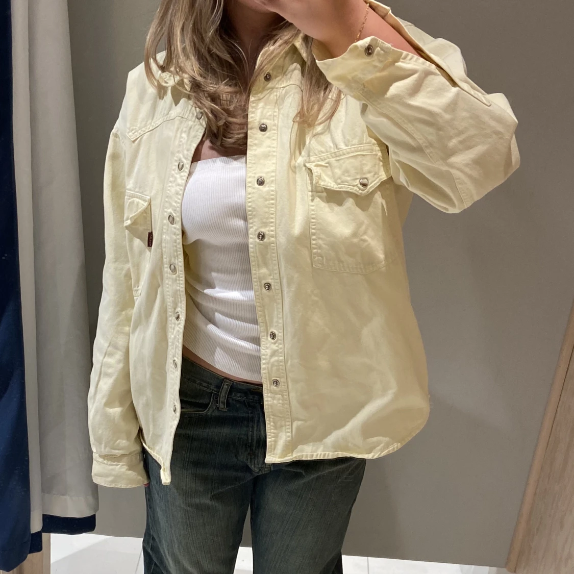 Säljer denna underbara ljus-gula jeansjackan då den inte kommer till användning.💛Skjortan är i en oversize fit på mig som brukar bära S/M & är 165cm lång. Om du har övriga frågor eller vill ha fler bilder är det bara att hmu!