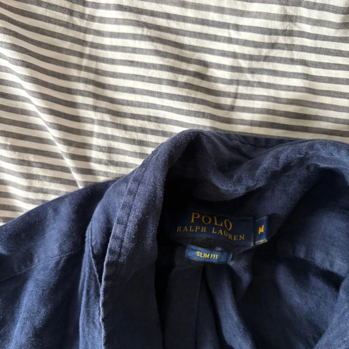 Snygg mörkblå skjorta från Polo Ralph Lauren i linne med klassisk krage och vita knappar. Slim fit-modell med lång ärm och ikonisk röd logga broderad på bröstet. Perfekt för dig som gillar stilrena och bekväma plagg.