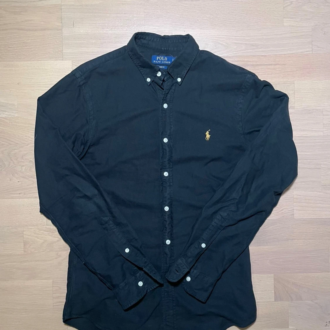 Svart skjorta från Polo Ralph Lauren med vita knappar. Broderad gul logga på bröstet. Skjortan är långärmad och har en stilren look.