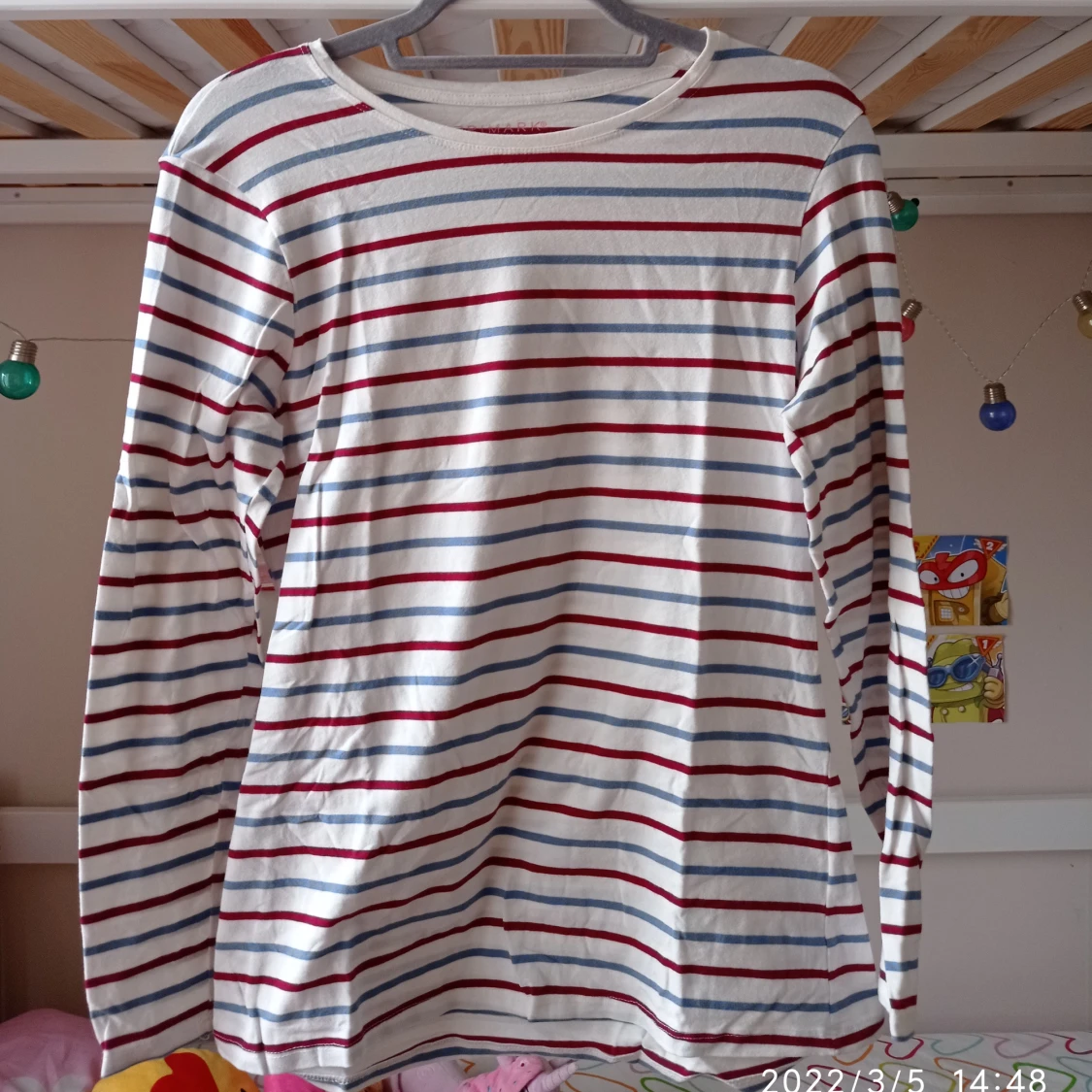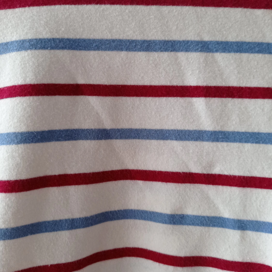 En långärmad tröja,med vita,röda och blåa ränder. (Kontakta mig för frakt pris).
