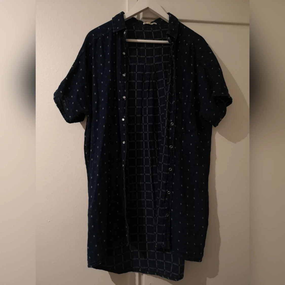Mörkblå oversized kortärmad skjorta. Köparen står för frakt.