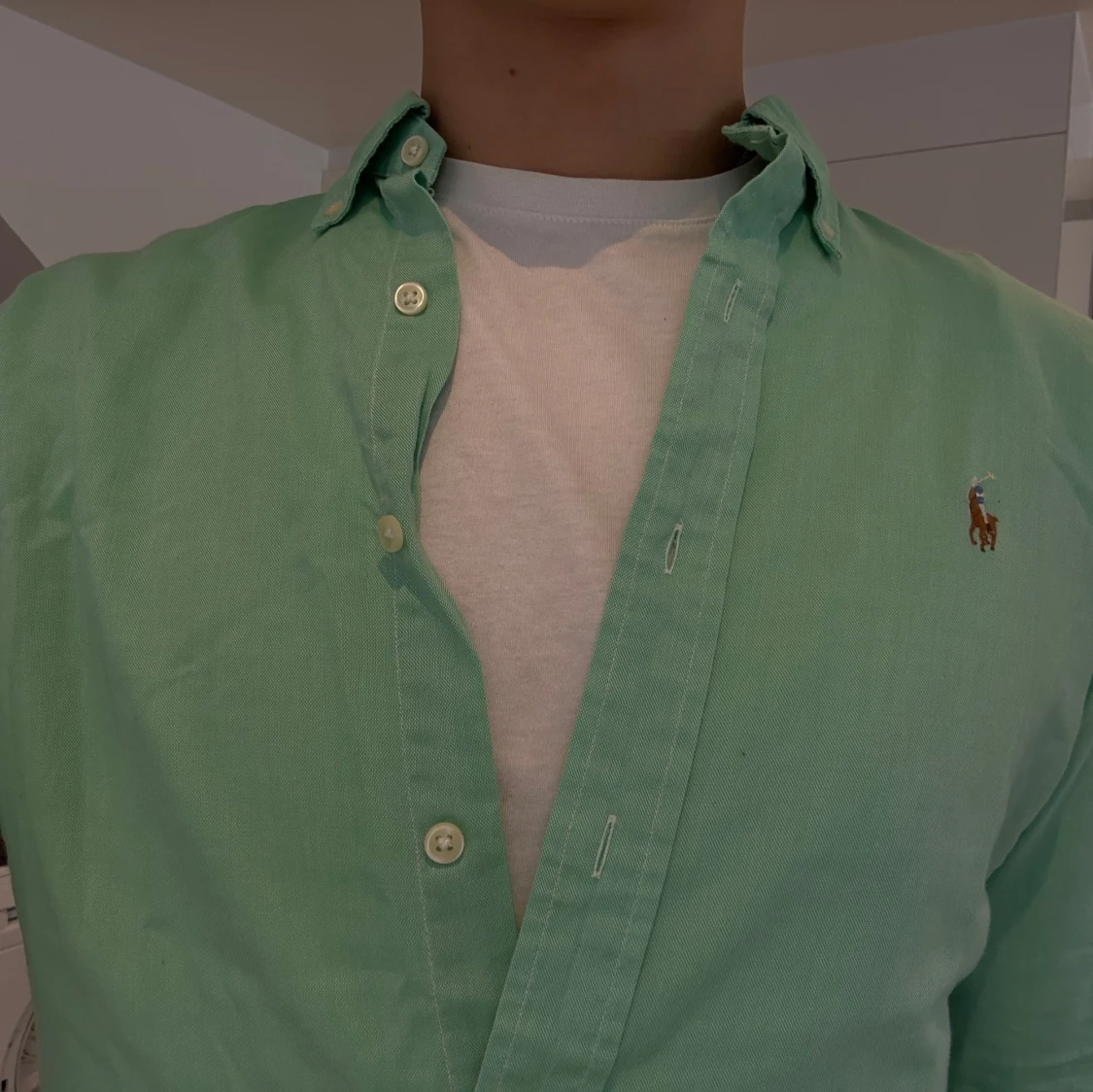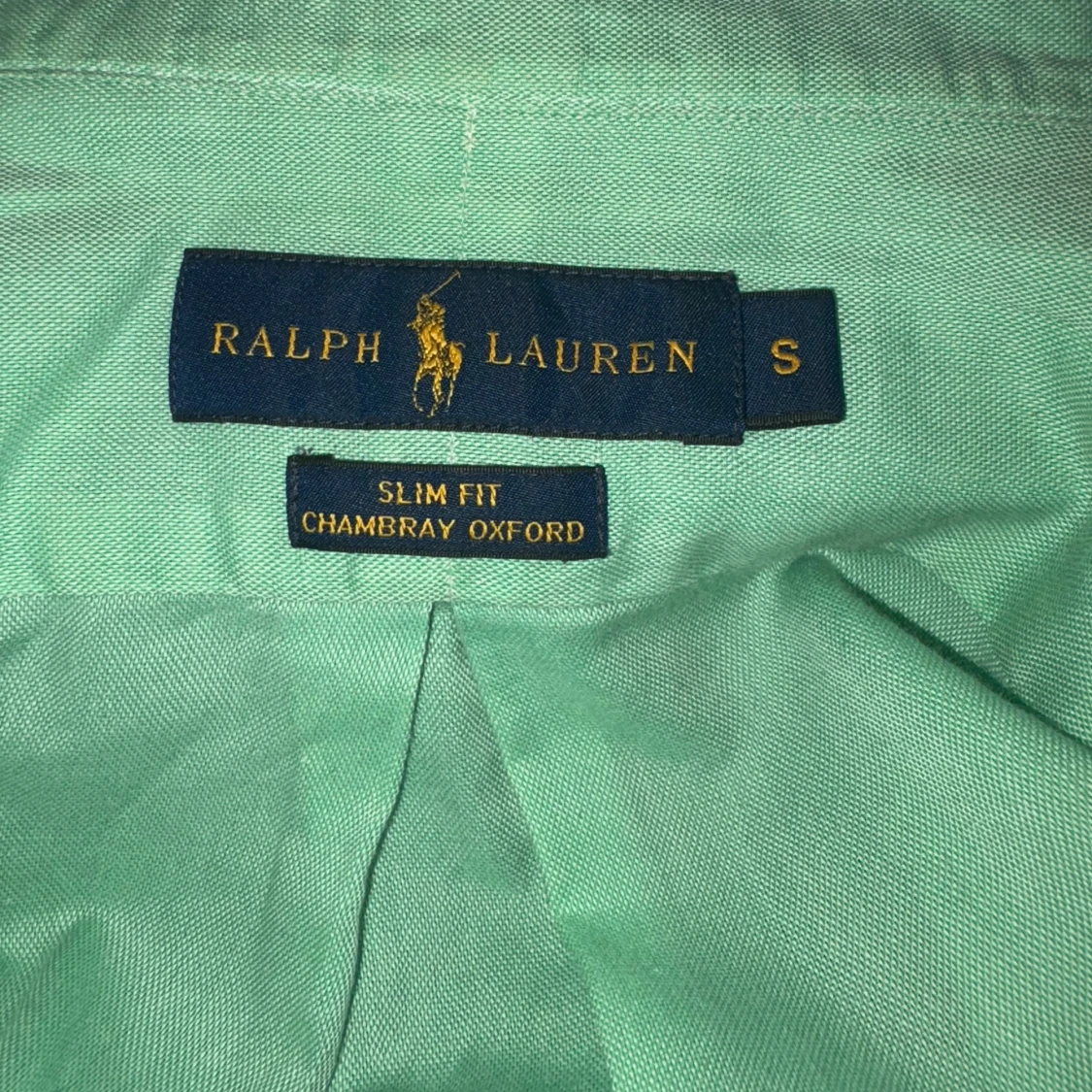 Väldigt fräsch mintgrön skjorta från Ralph Lauren i slim fit-modell, storlek S. Klassisk oxfordskjorta med knappar hela vägen, button down-krage och broderad logga på bröstet. Tillverkad i 100% bomull för en skön känsla och snygg passform. Riktigt härligt färg, perfekt till sommaren!