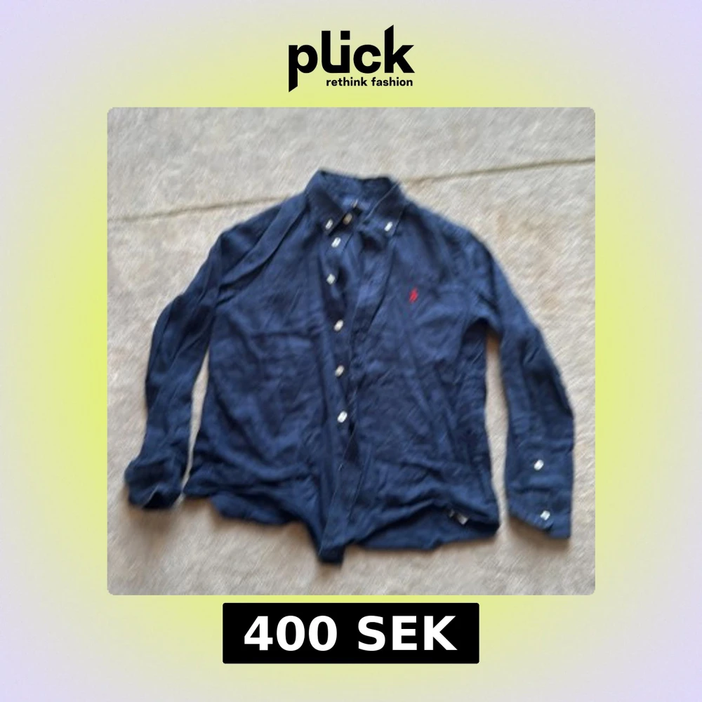 Snygg mörkblå linneskjorta från Ralph Lauren i storlek 10-12 år. Klassisk design med knappar framtill och lång ärm. Skjortan har den ikoniska röda Polo-loggan broderad på bröstet och är tillverkad i linne..