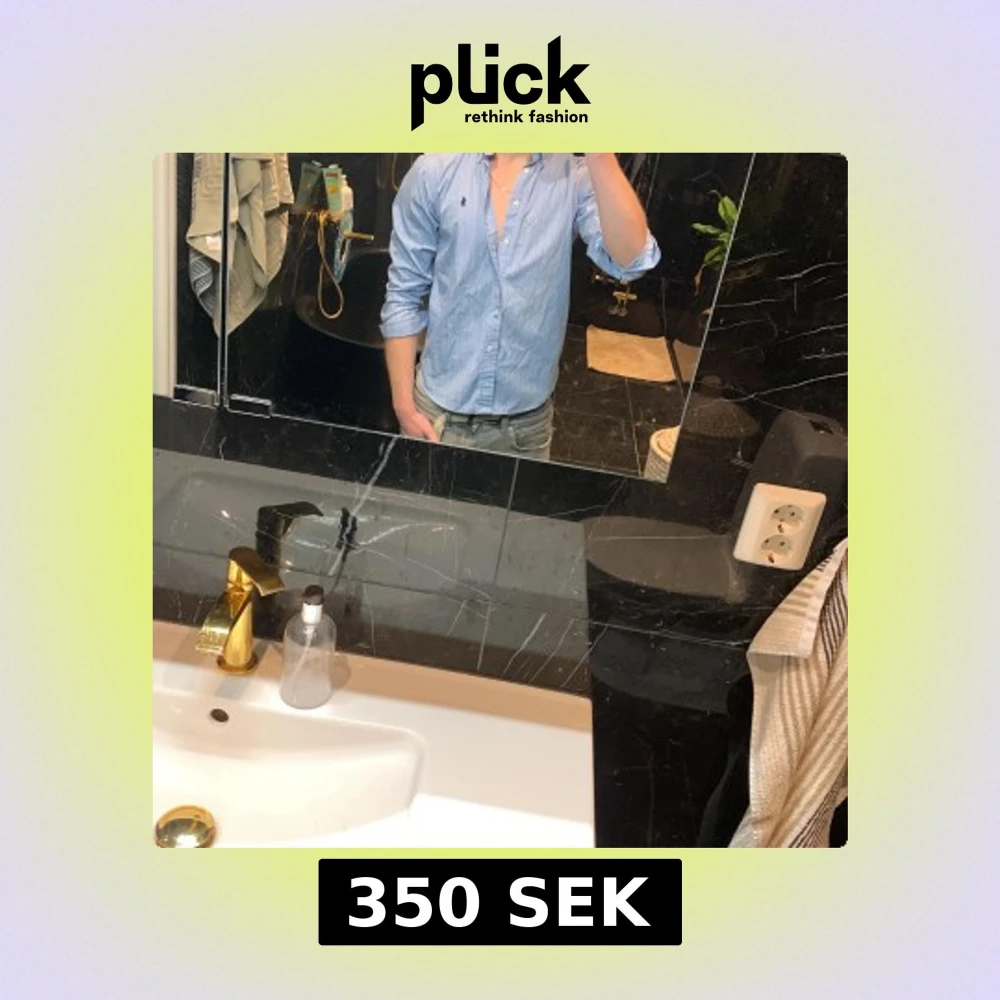 En ljusblå Ralph lauren skjorta 100% äkta passar någon ca 165 kanske är 175 o den är liten på mig storlek 14L