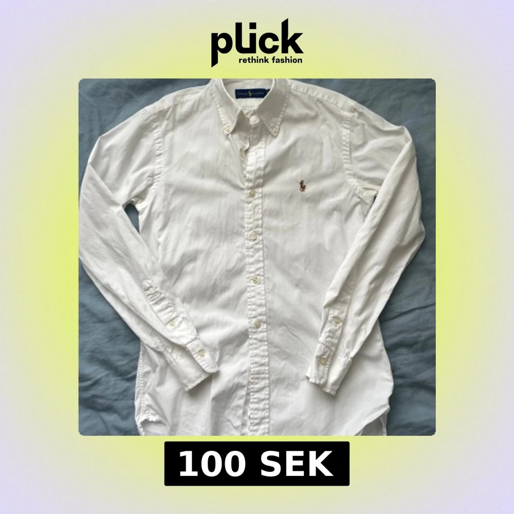 Klassisk vit skjorta från Ralph Lauren med broderad polospelare på bröstet. Skjortan har lång ärm, knappar framtill och button down-krage. Tillverkad i bomull för en skön och stilren känsla. Perfekt för dig som gillar tidlös och clean stil. Ganska bra skick.