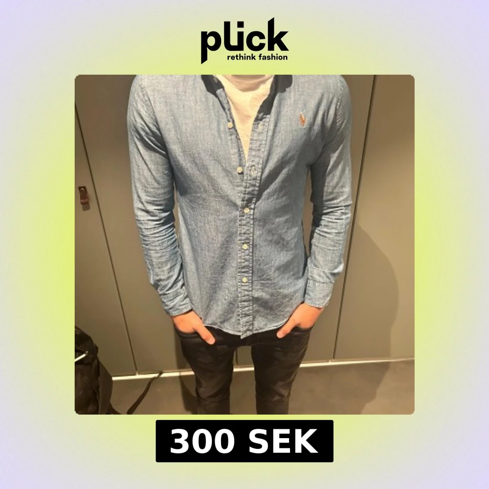 Storleken står 8 men vet inte vad det ska tolkas som. Modellen är 172 och den sitter som en XS skulle jag säga. Inga defekter. Samma storlek som den andra Ralph lauren skjortan jag säljer.