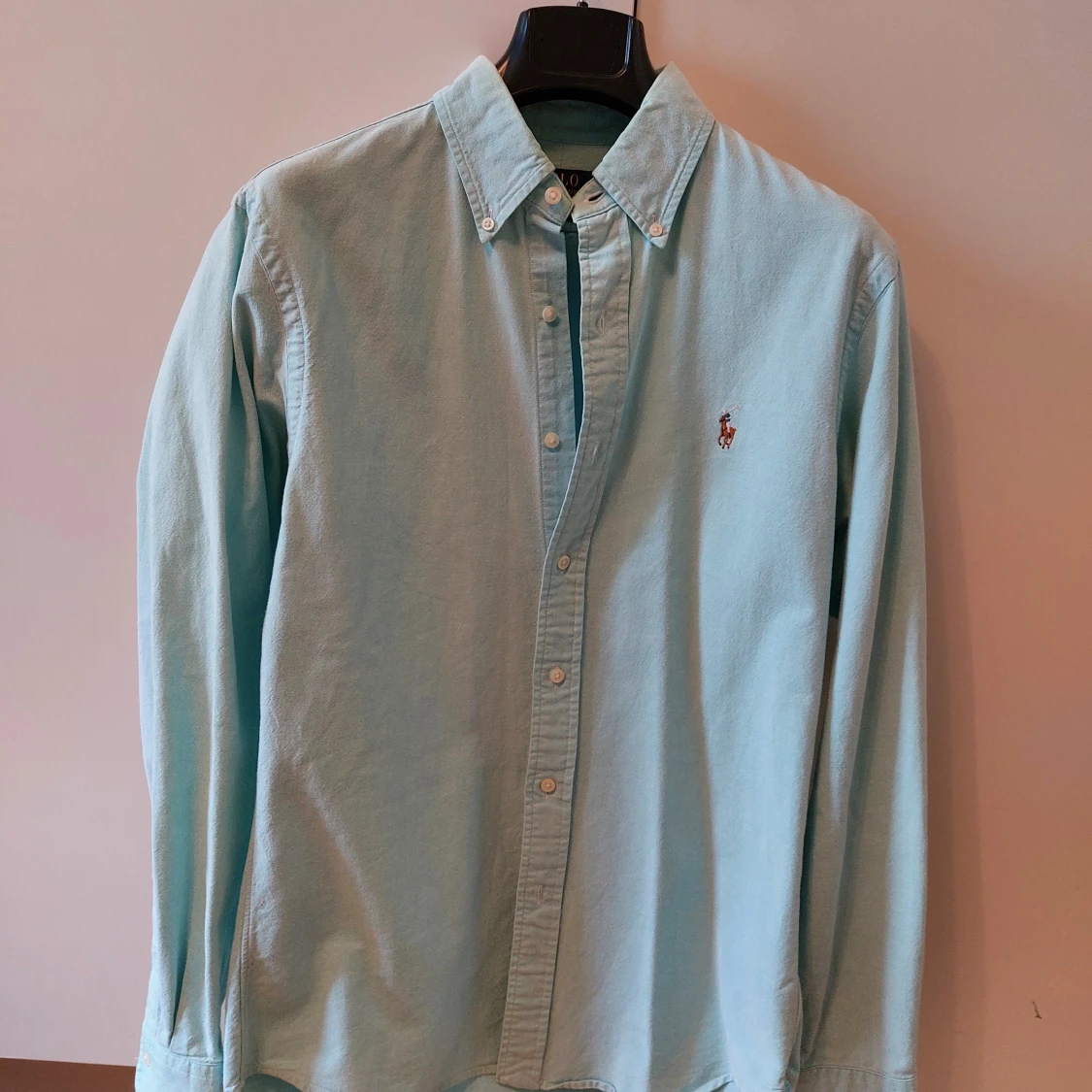 Säljer en klassisk ljusblå skjorta från Polo Ralph Lauren med button-down krage och broderad logga på bröstet. Skjortan har långa ärmar och knäppning framtill. Perfekt för en stilren look! Perfekt för sommaren och är knappast använd.