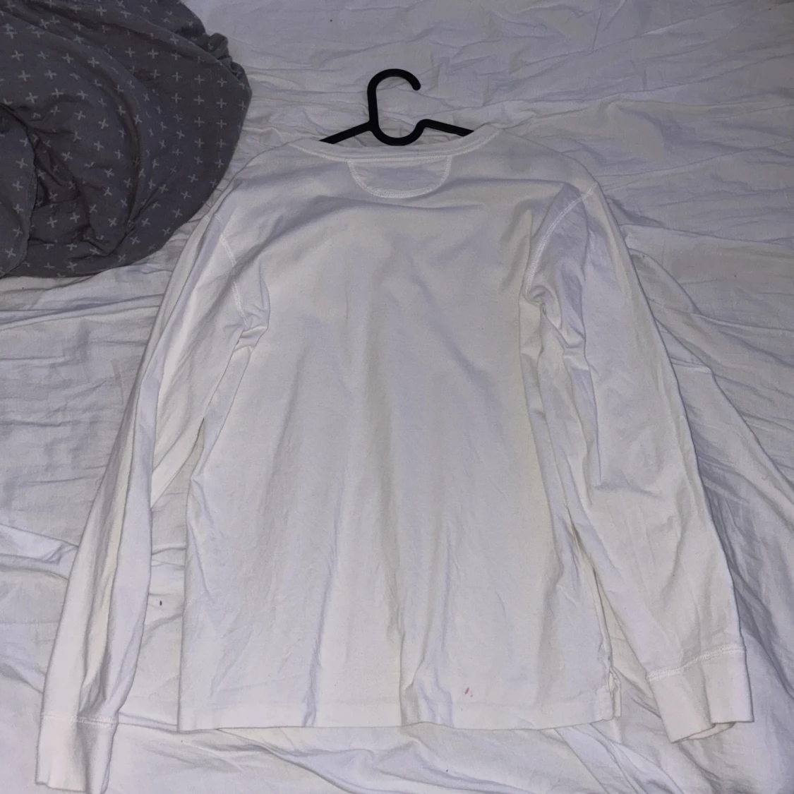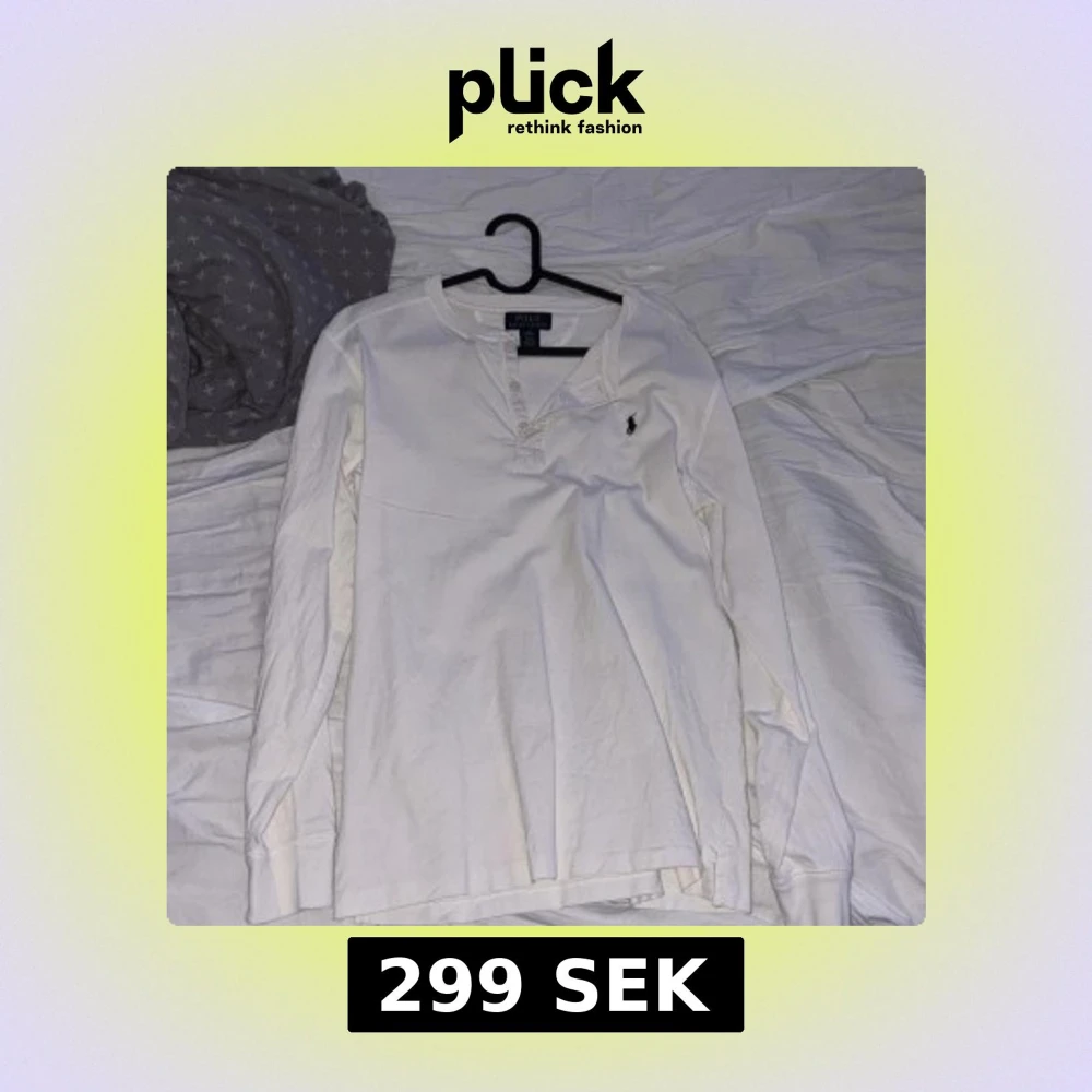 Vit långärmad tröja från Polo Ralph Lauren med klassisk krage och knappar vid halsen. Tröjan har det ikoniska broderade logotypen på bröstet och är tillverkad i mjuk bomull. Perfekt för en stilren och avslappnad look.
