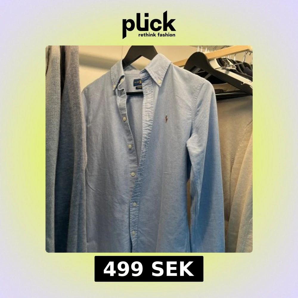 Klassisk ljusblå skjorta från Ralph Lauren med broderad logga på bröstet. Skjortan har lång ärm, knappar hela vägen och button-down krage. Custom fit-modell i mjuk bomull, perfekt till många olika tillfällen. Skick 9-10 mitt pris 499