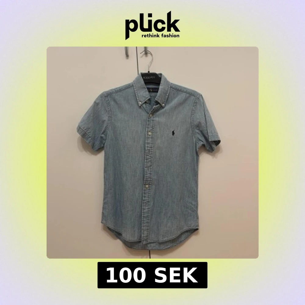 Säljer en ljusblå kortärmad skjorta från Ralph Lauren i jeansliknande bomullstyg. Väldigt bra skick.