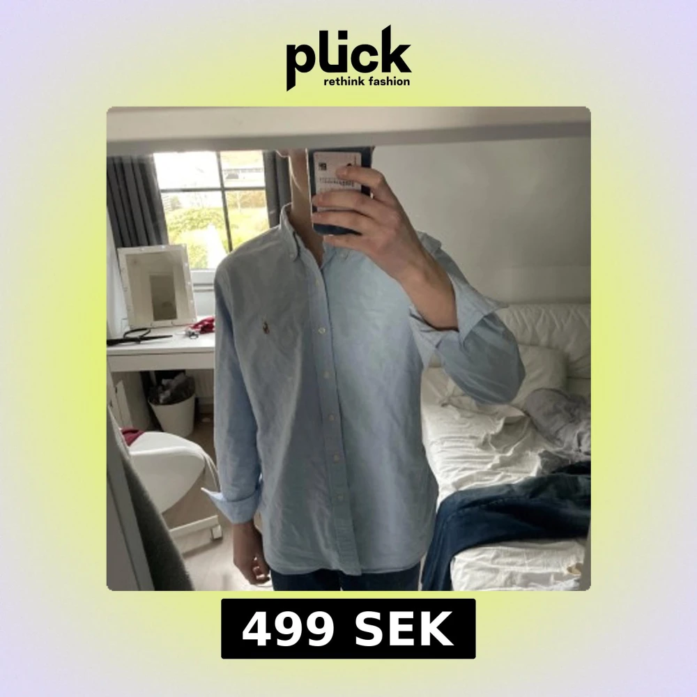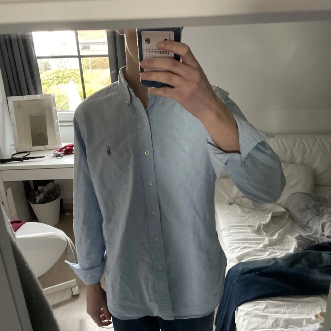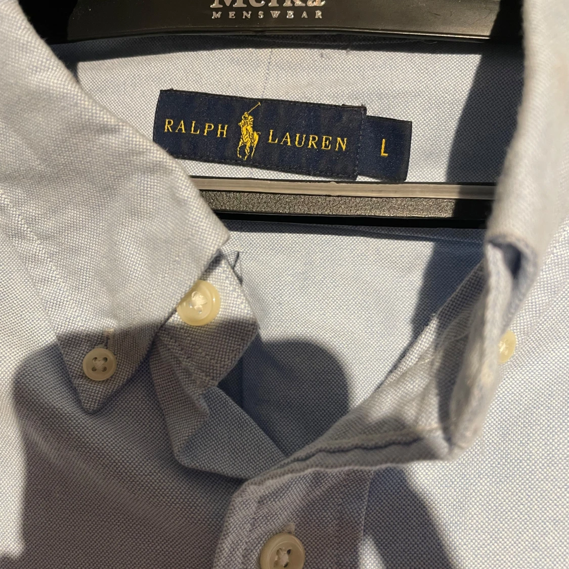 Säljer en klassisk ljusblå skjorta från Ralph Lauren med broderad logotyp på bröstet. Skjortan har långa ärmar och knappar framtill samt på kragen. Perfekt för en stilren look. Skjortan är använd ett fåtal gånger och säljer då den är för stor för mig!