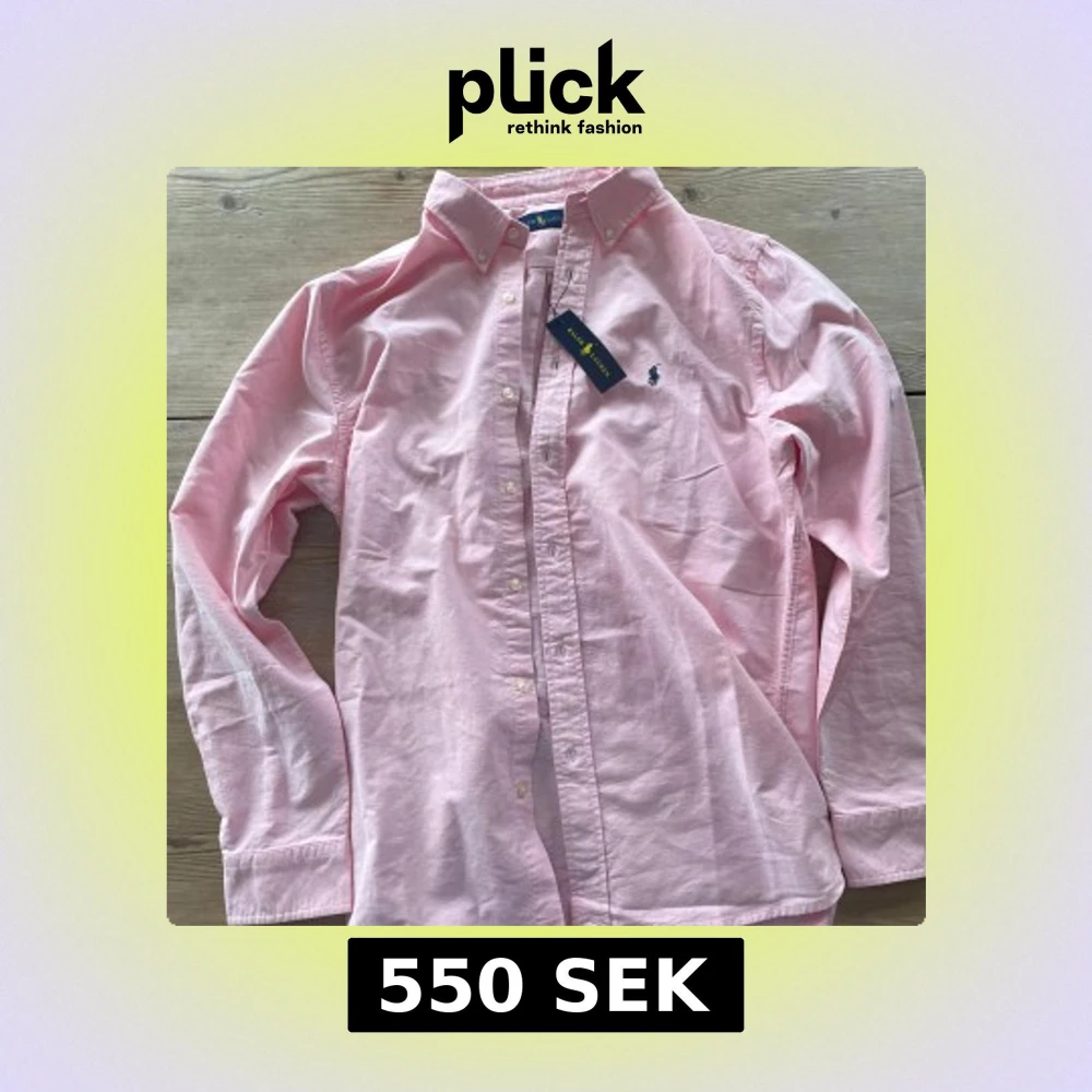 Säljer en klassisk ljusrosa skjorta från Ralph Lauren med button-down krage och broderad logga på bröstet. Skjortan har långa ärmar och knäppning framtill. Perfekt för en stilren look.