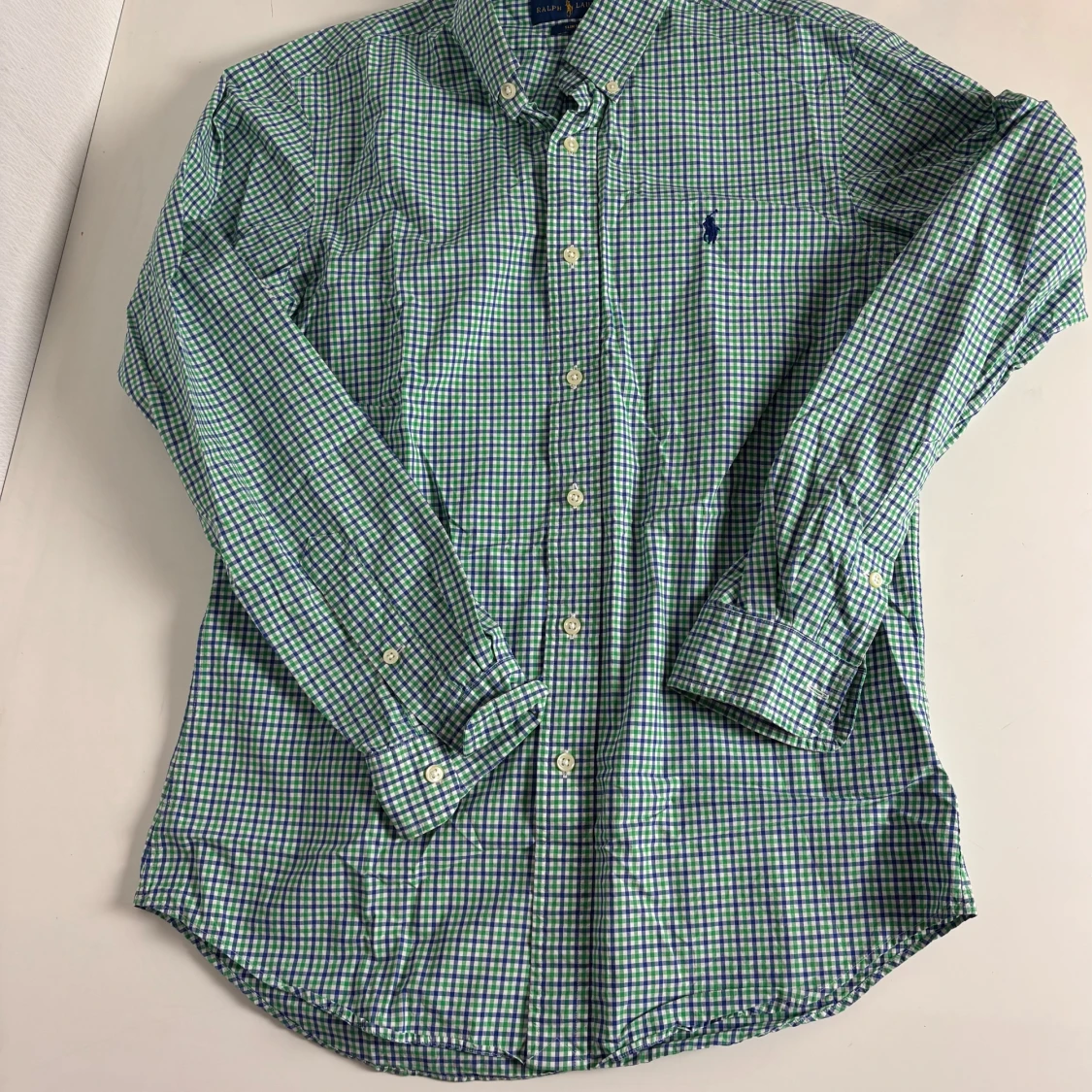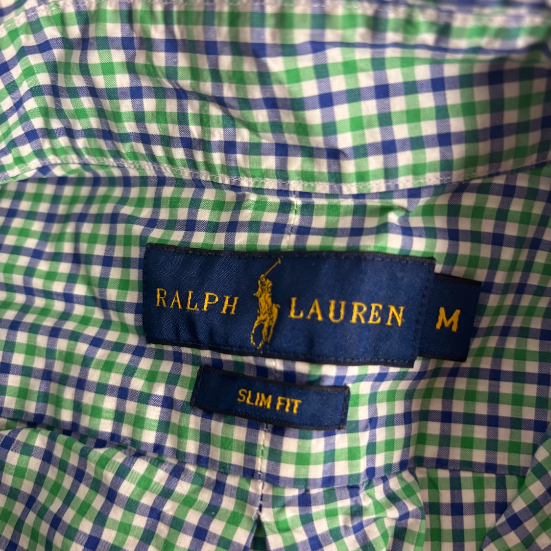 Snygg rutig skjorta från Ralph Lauren i grönt, blått och vitt. Slim fit-modell med klassisk krage, knappar framtill och broderad logga på bröstet. Perfekt för dig som gillar preppy stil och vill sticka ut med färg. Tillverkad i mjuk bomull.
