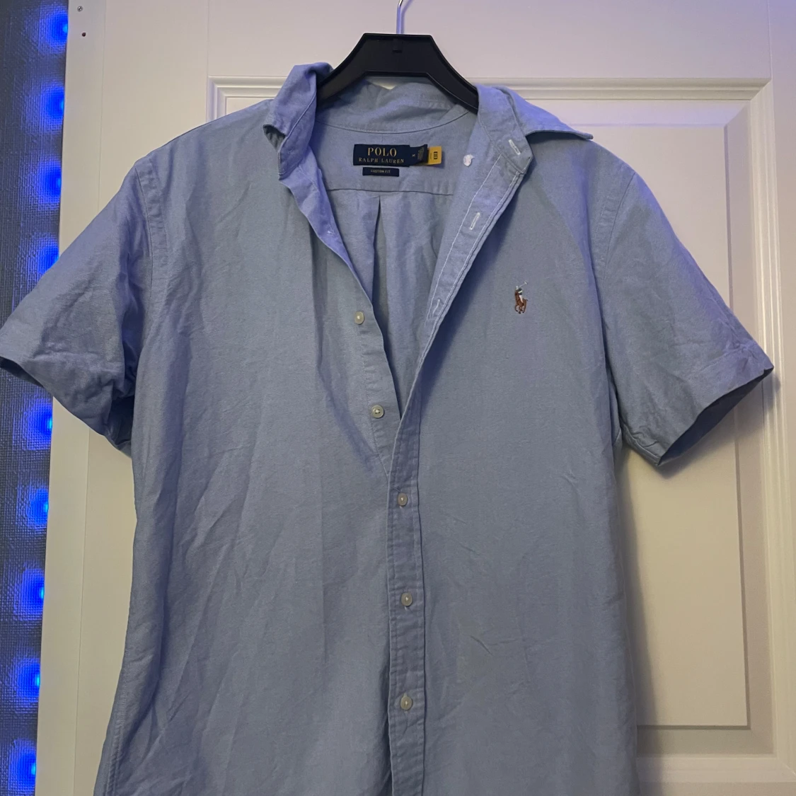 Snygg ljusblå kortärmad skjorta från Polo Ralph Lauren med klassisk krage och broderad logga på bröstet. Skjortan har custom fit-passform och knäppning framtill. Perfekt för en clean och stilren look. Nästan oanvänd